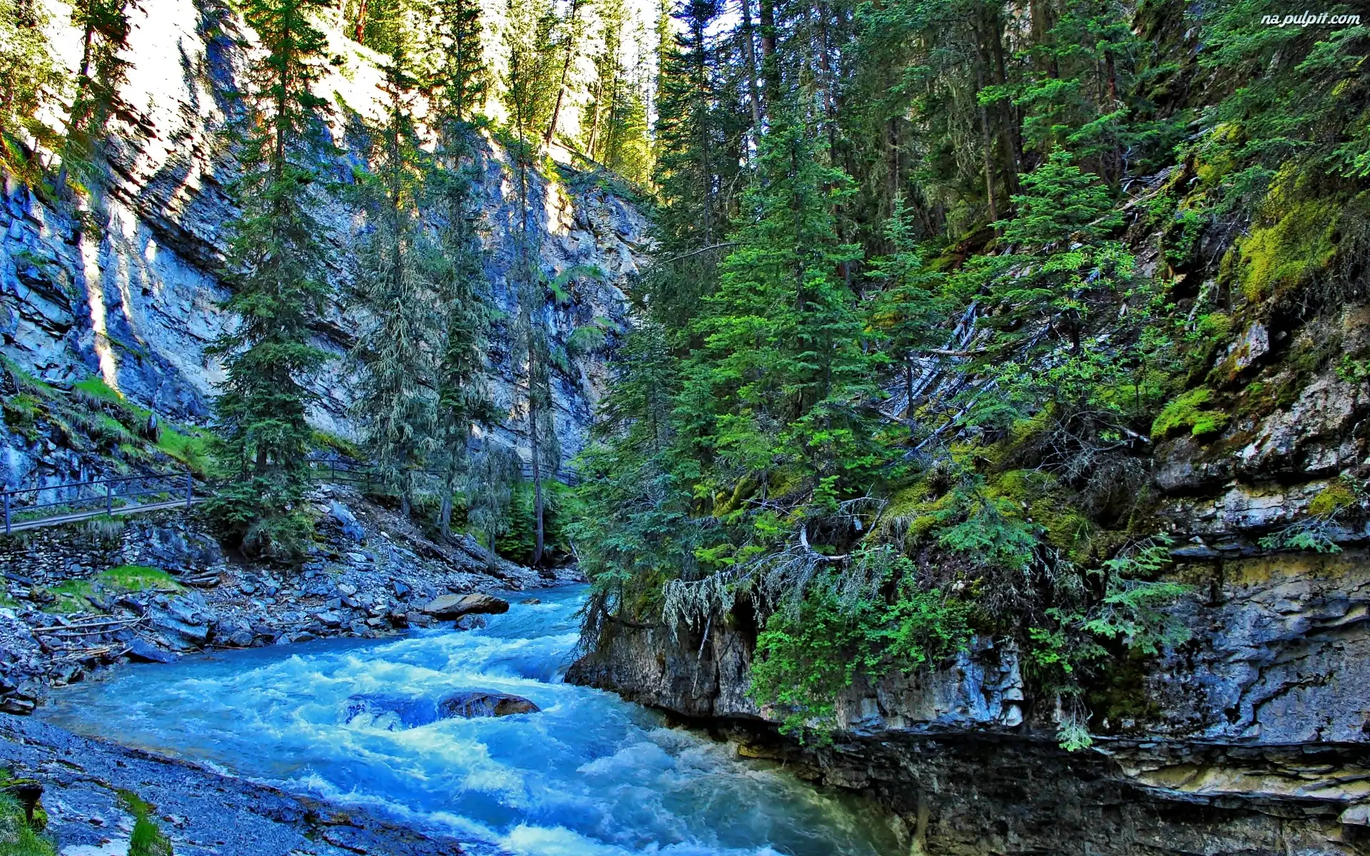 Świerki, Kamienie, Rzeka, Góry, Drzewa Na Pulpit