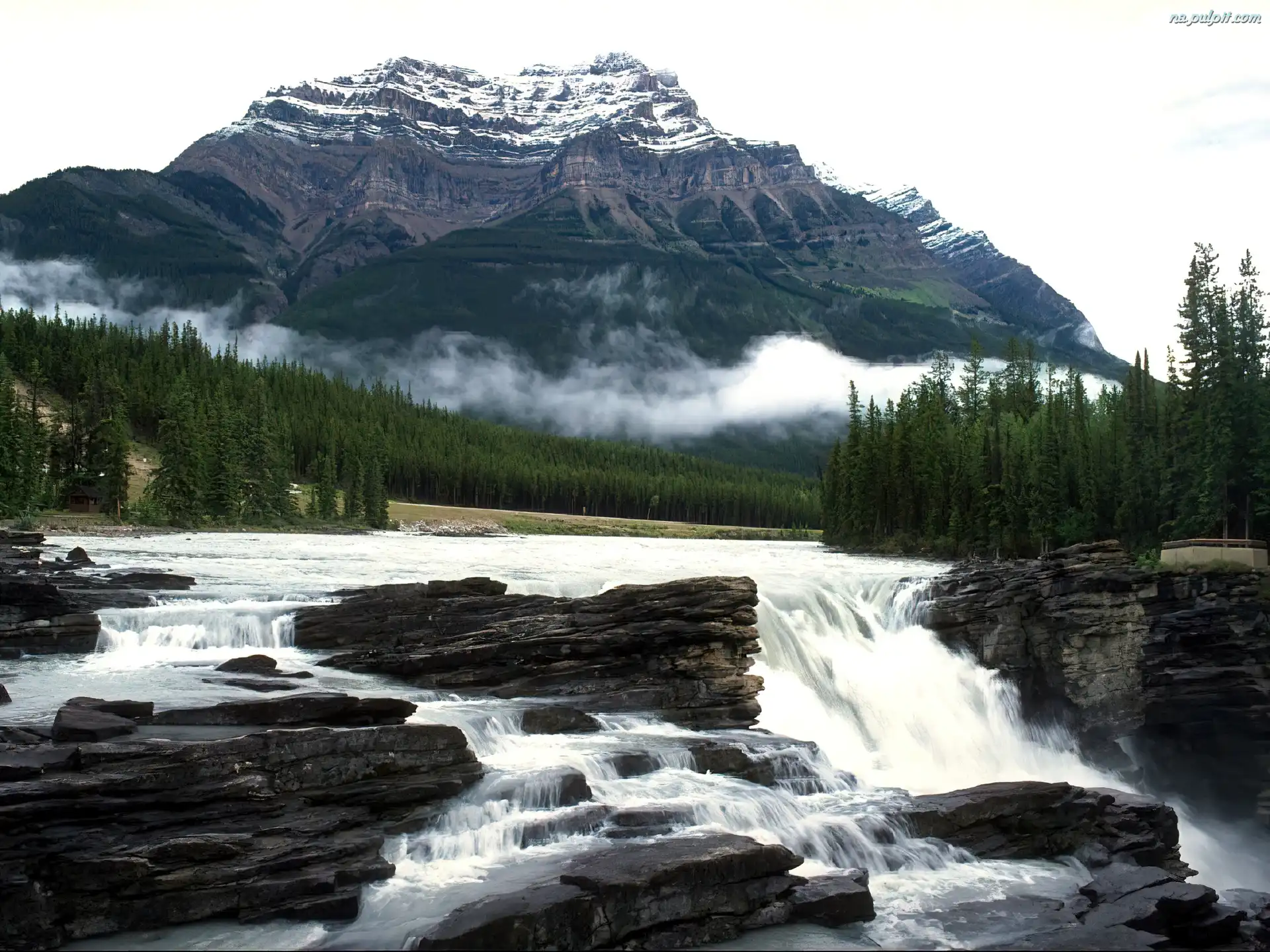 Góry, Wodospad, Kanada, Drzewa Na Pulpit