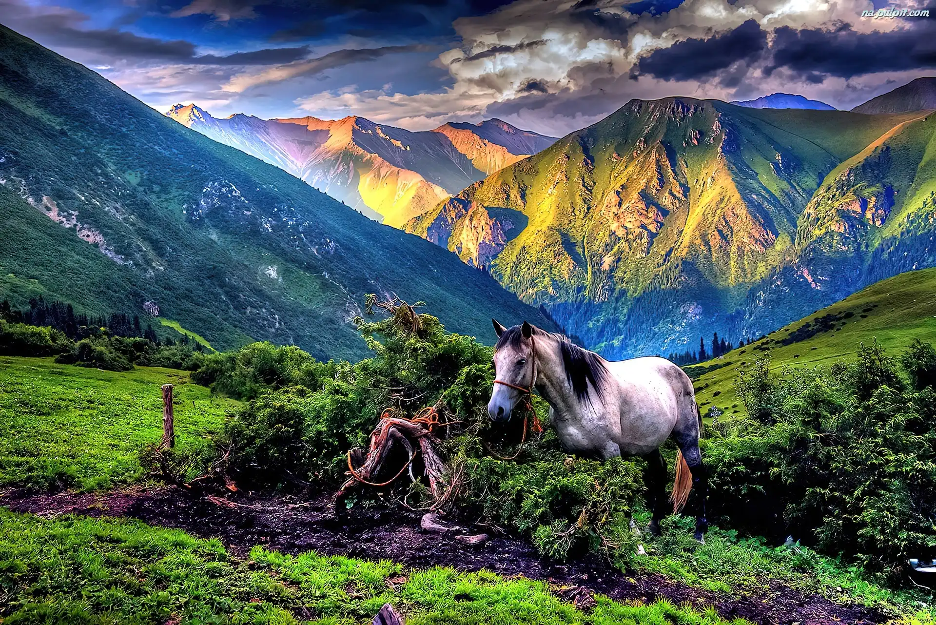 Koń, Góry, Chmury Na Pulpit