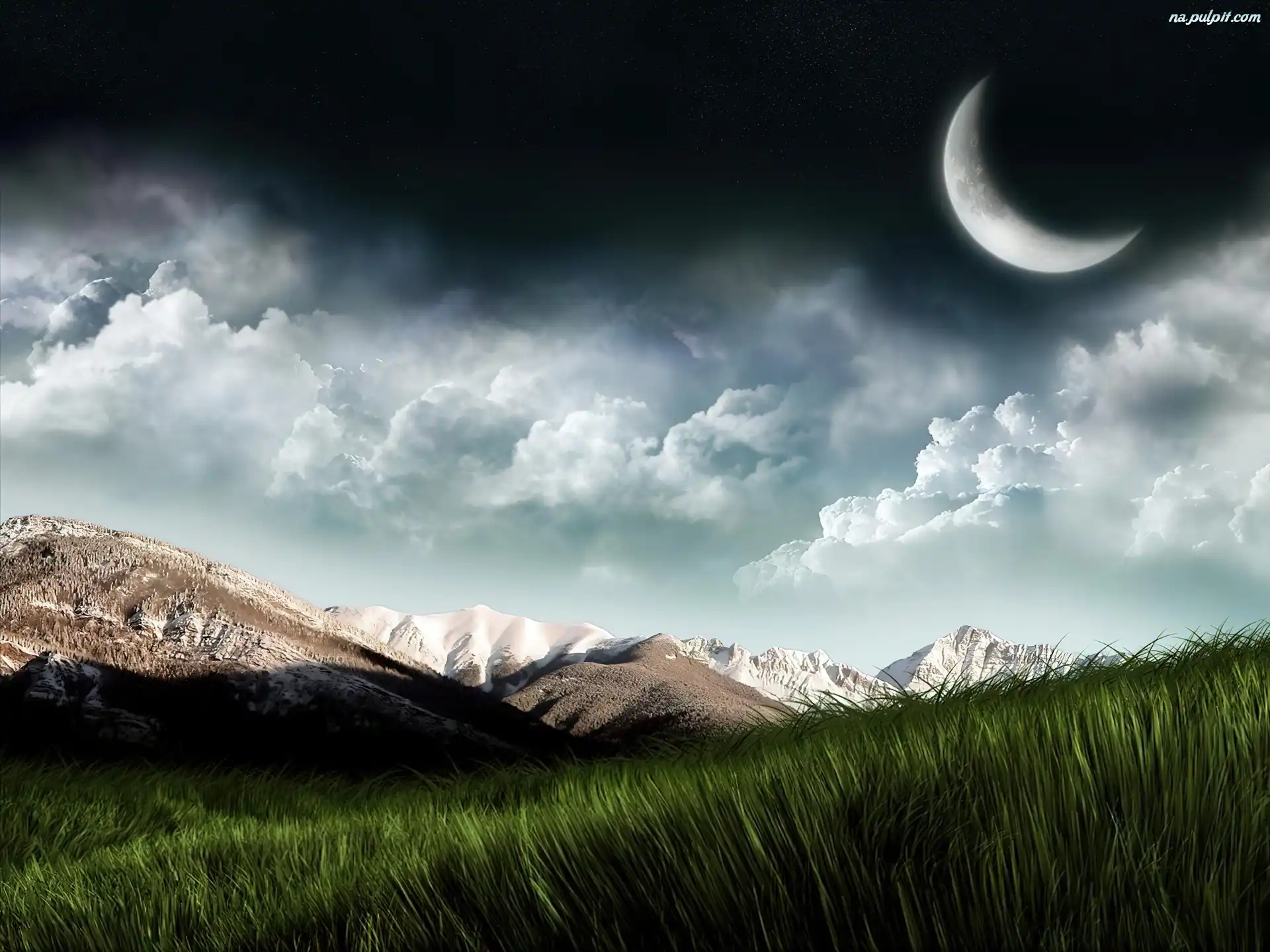Księżyc, Góry, Chmury Na Pulpit