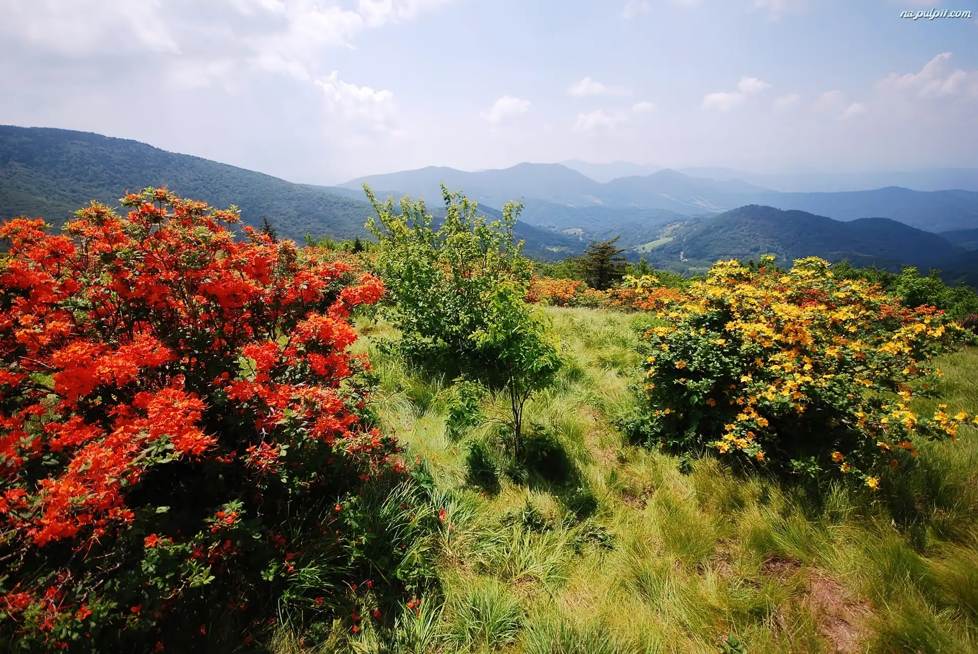 Góry, Azalie, Kwitnące, Łąka Na Pulpit