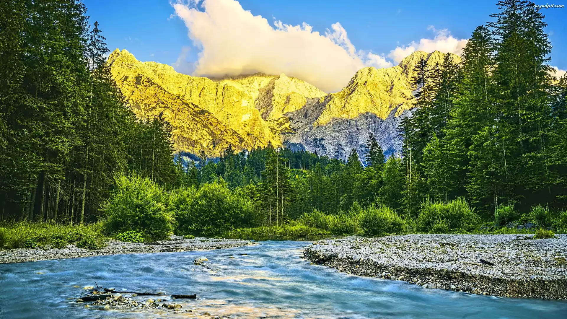 Chmury, Góry, Las, Drzewa, Rzeka Na Pulpit
