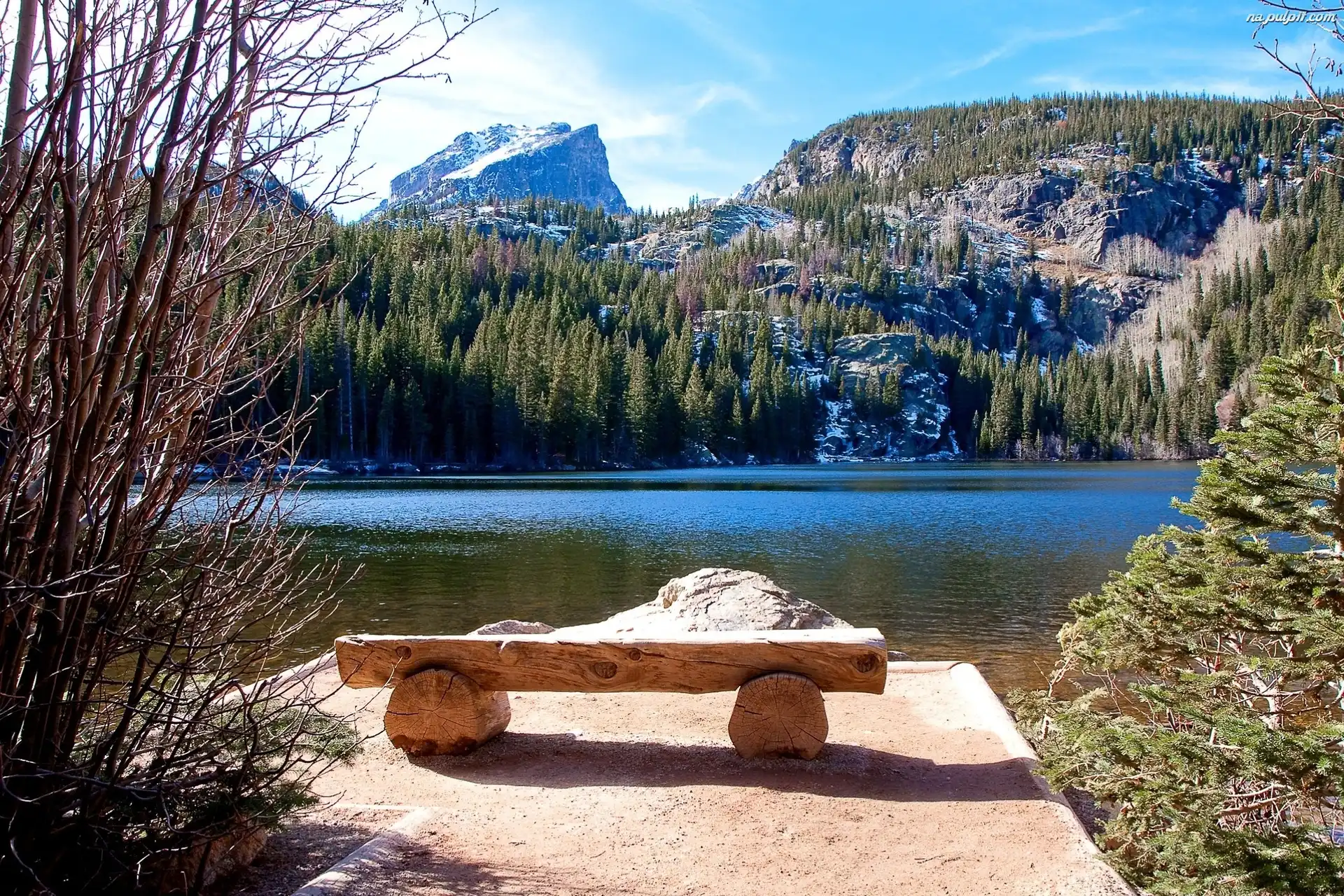 Ławeczka, Lasy, Góry, Jezioro Na Pulpit