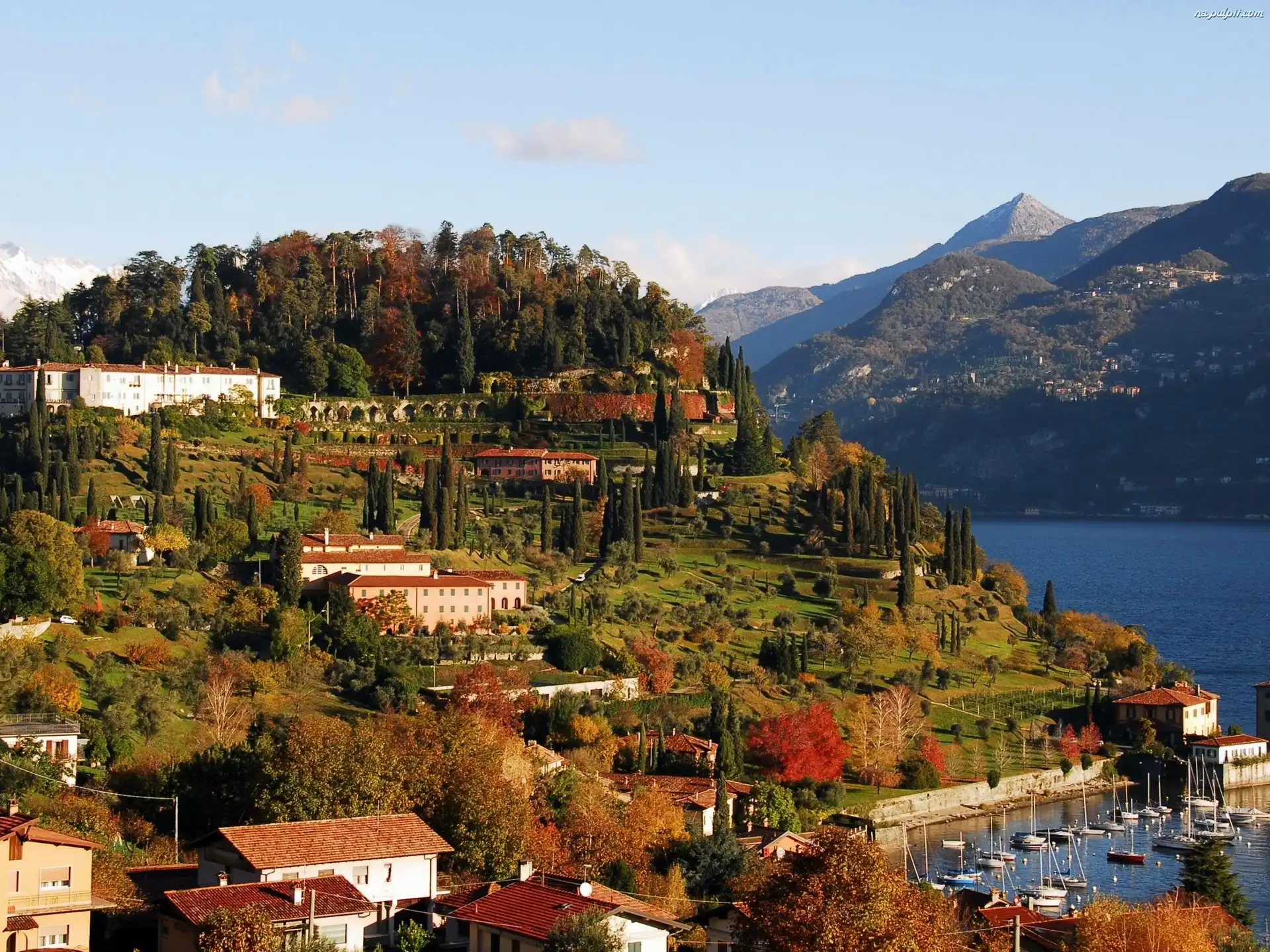 Góry, Miasteczko, Jachty, Jezioro, Lombardia, Como
