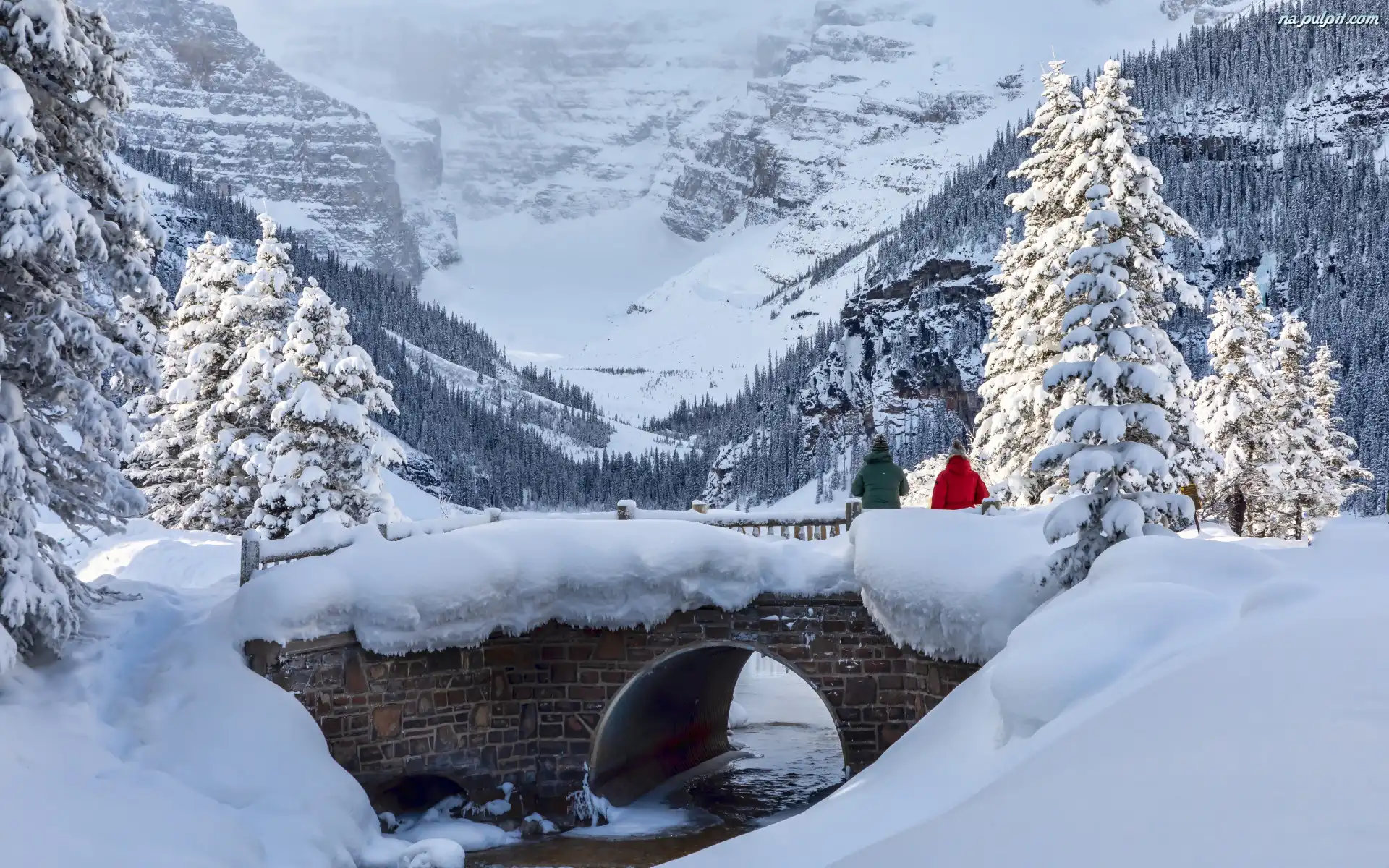 Ludzie, Góry, Śnieg, Drzewa, Ośnieżone, Zima, Most Na Pulpit