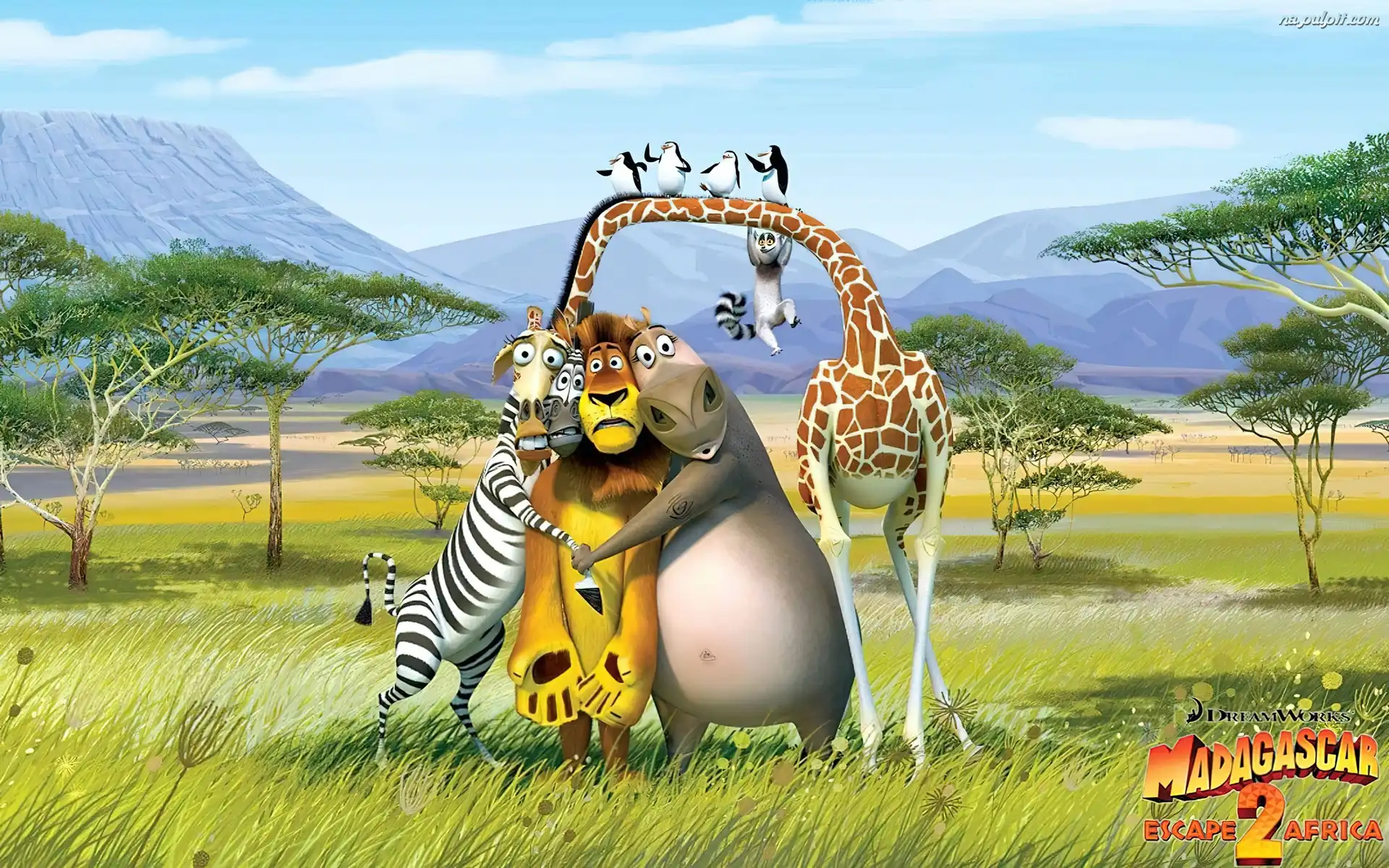 Madagaskar 2 Madagaskar, Góry, Drzewa Hipopotan, Zebra, Żyrafa, Madagaskar, Lew
