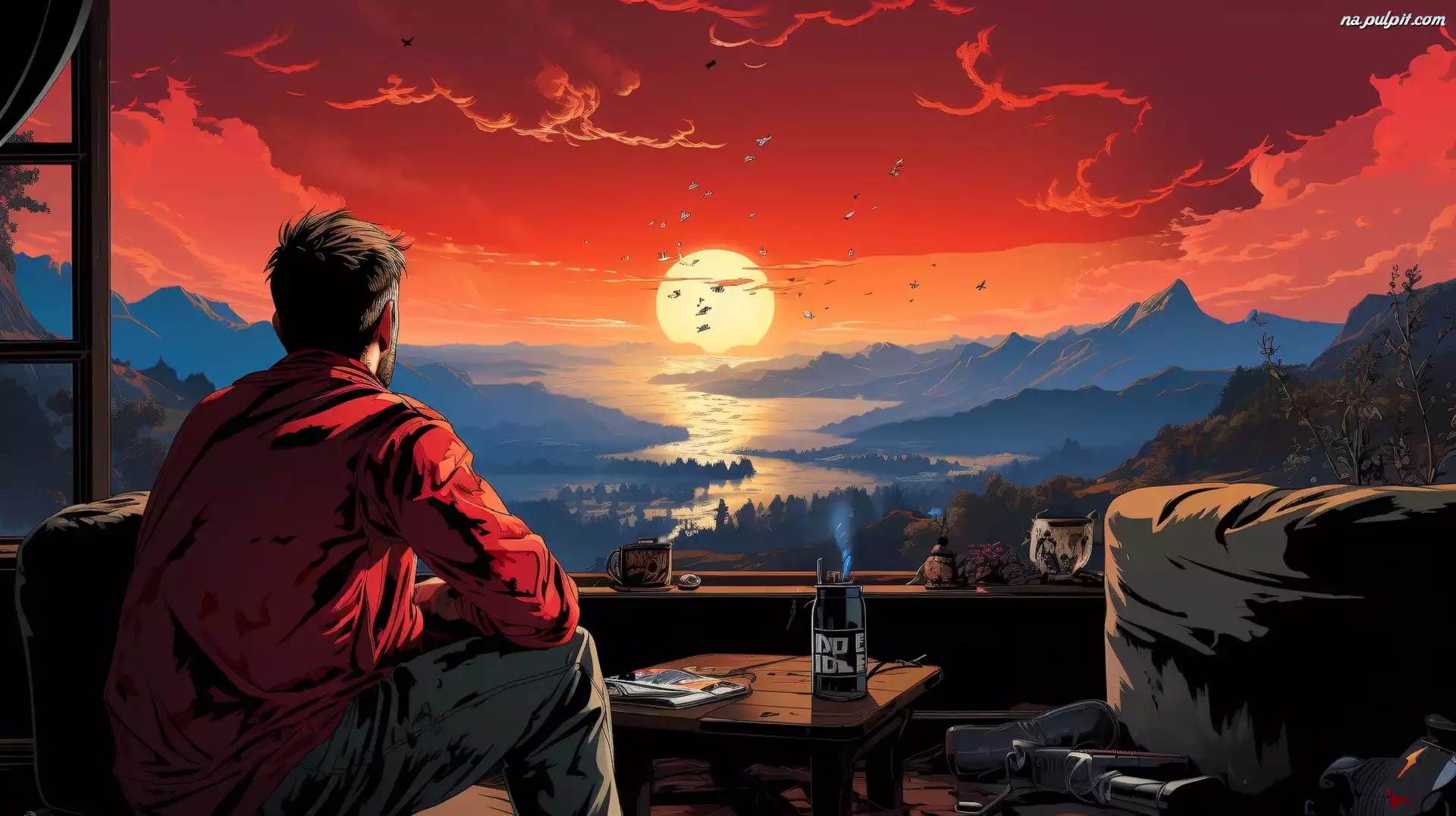 Balkon, Zachód słońca, Góry, 2D, Mężczyzna Na Pulpit