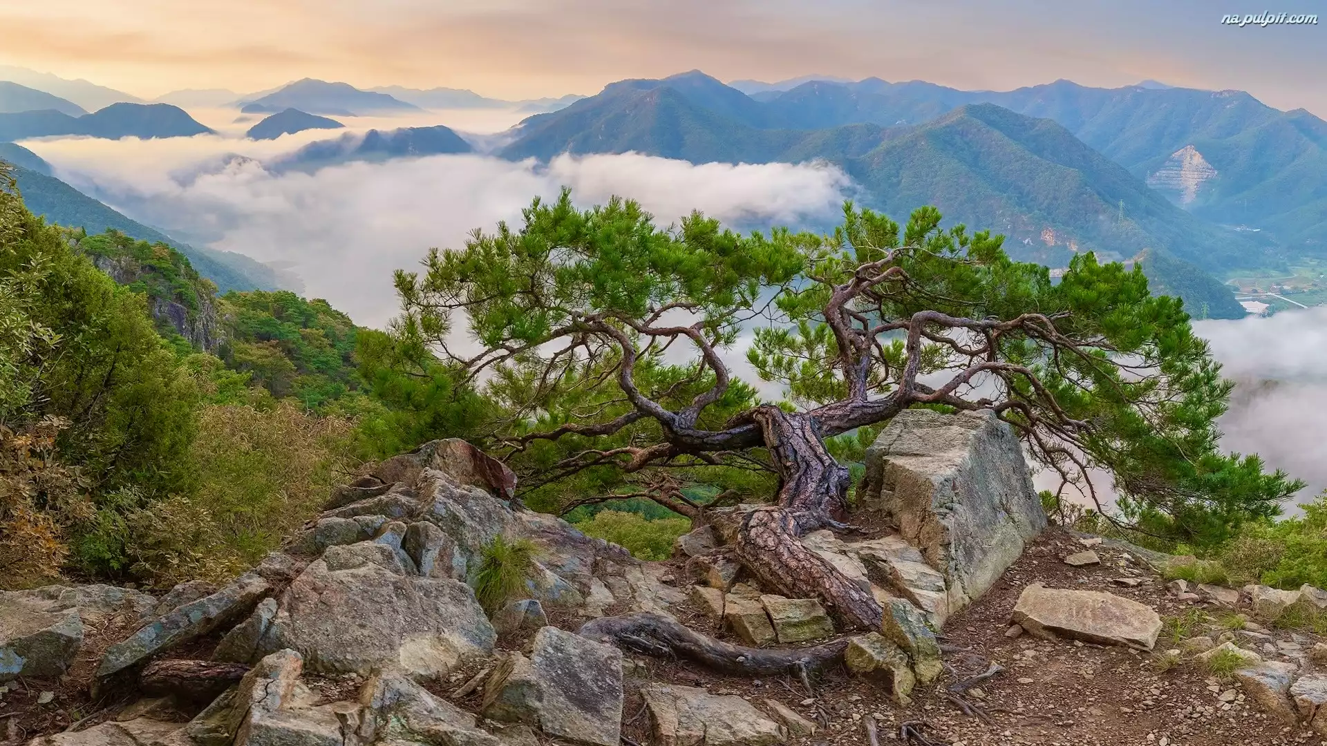 Drzewo, Góry, Mgła, Sosna, Skały Na Pulpit
