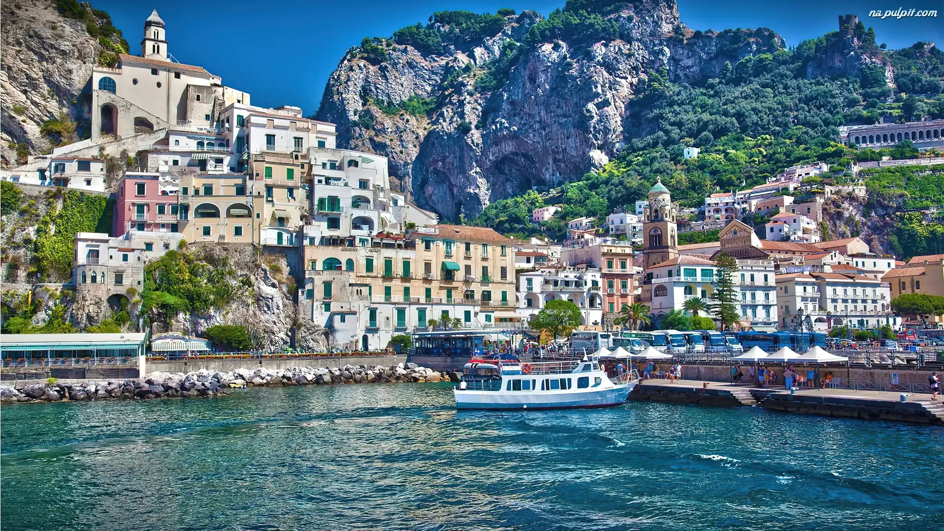 Góry, Łódź, Amalfi, Miasto, Morze Na Pulpit