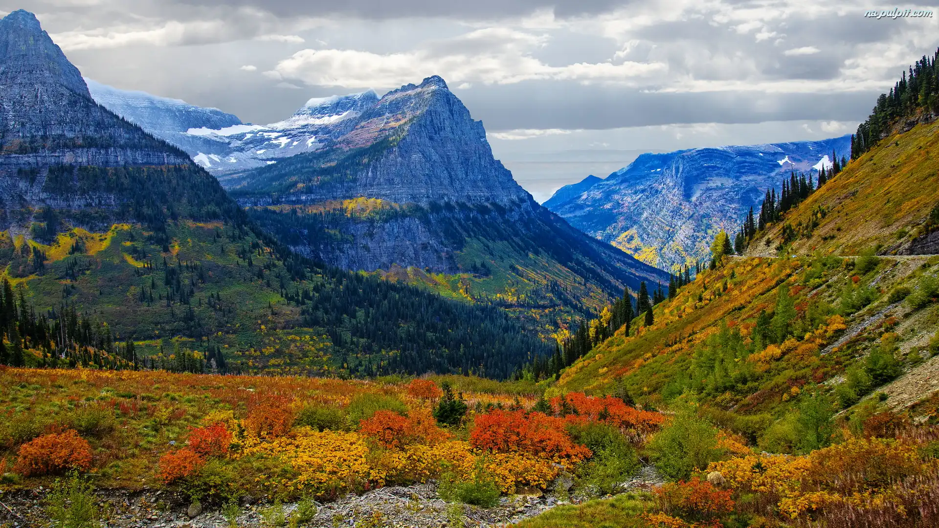 Stany Zjednoczone, Góry Skaliste, Montana, Kolorowe, Jesień, Park Narodowy Glacier, Rośliny Na Pulpit |