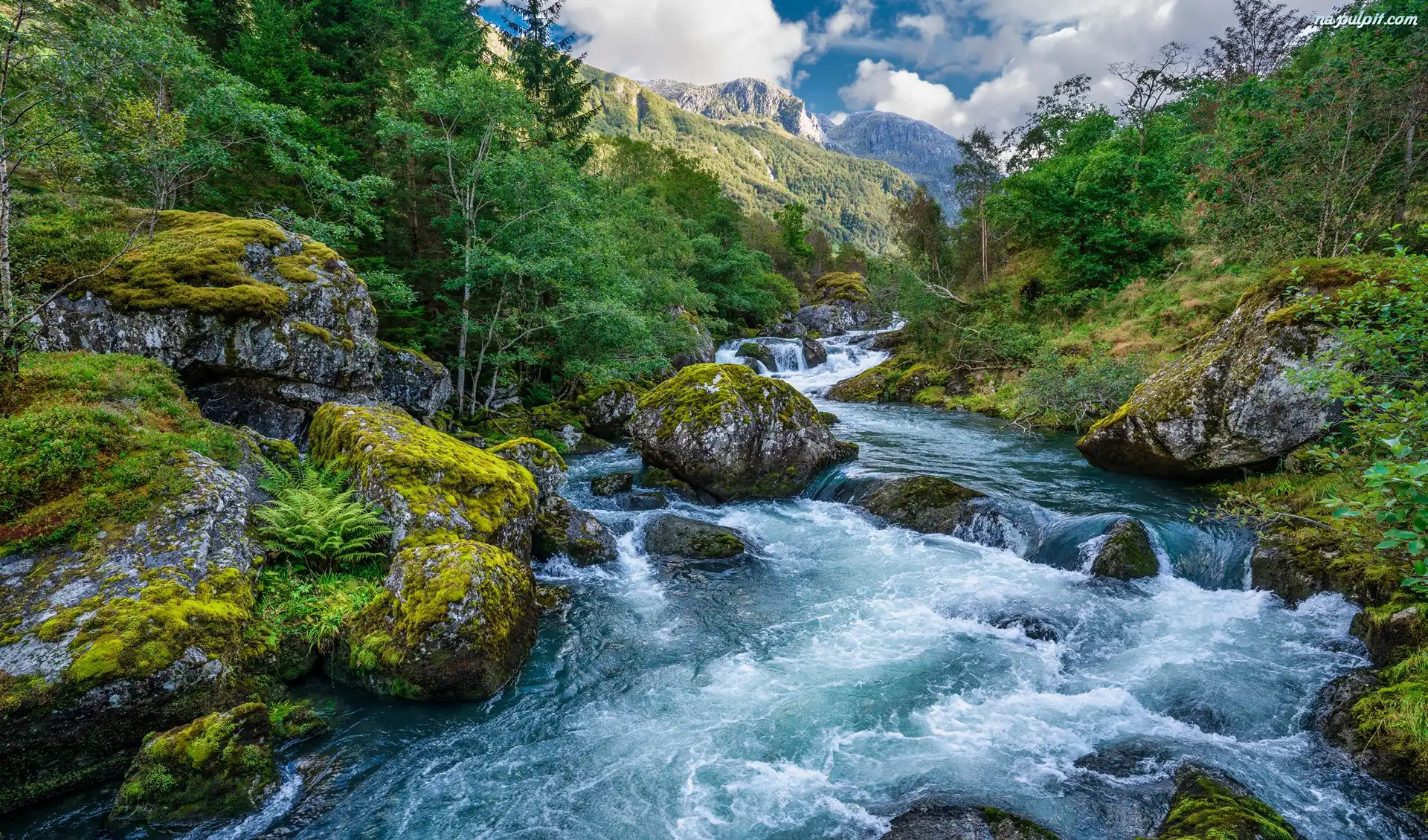 Drzewa, Omszone, Kamienie, Park Narodowy Folgefonna, Norwegia, Skały, Rzeka, Góry Na Pulpit