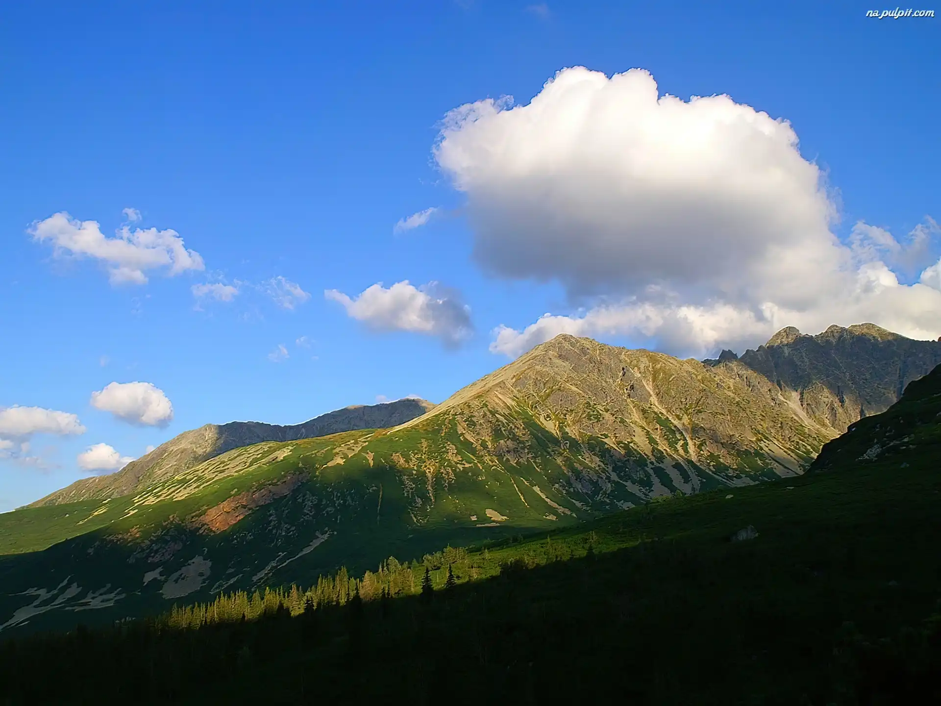 Plaża, Morze, Góra, Chmura Góra Chatka, Europa, Góry Rumianek, Mak, Łąka Gwiazdy, Niebo Góry, Chmury Góra choinki, Góry, Drzewa łąka, Góry Morze, Zachód Słońca, Chmura Łąka, Zachód, Słońca Sosny, Kopalnia, Piasku Księżyc, Łąka Morze, Chmura, Lato, Góry, Kamienie