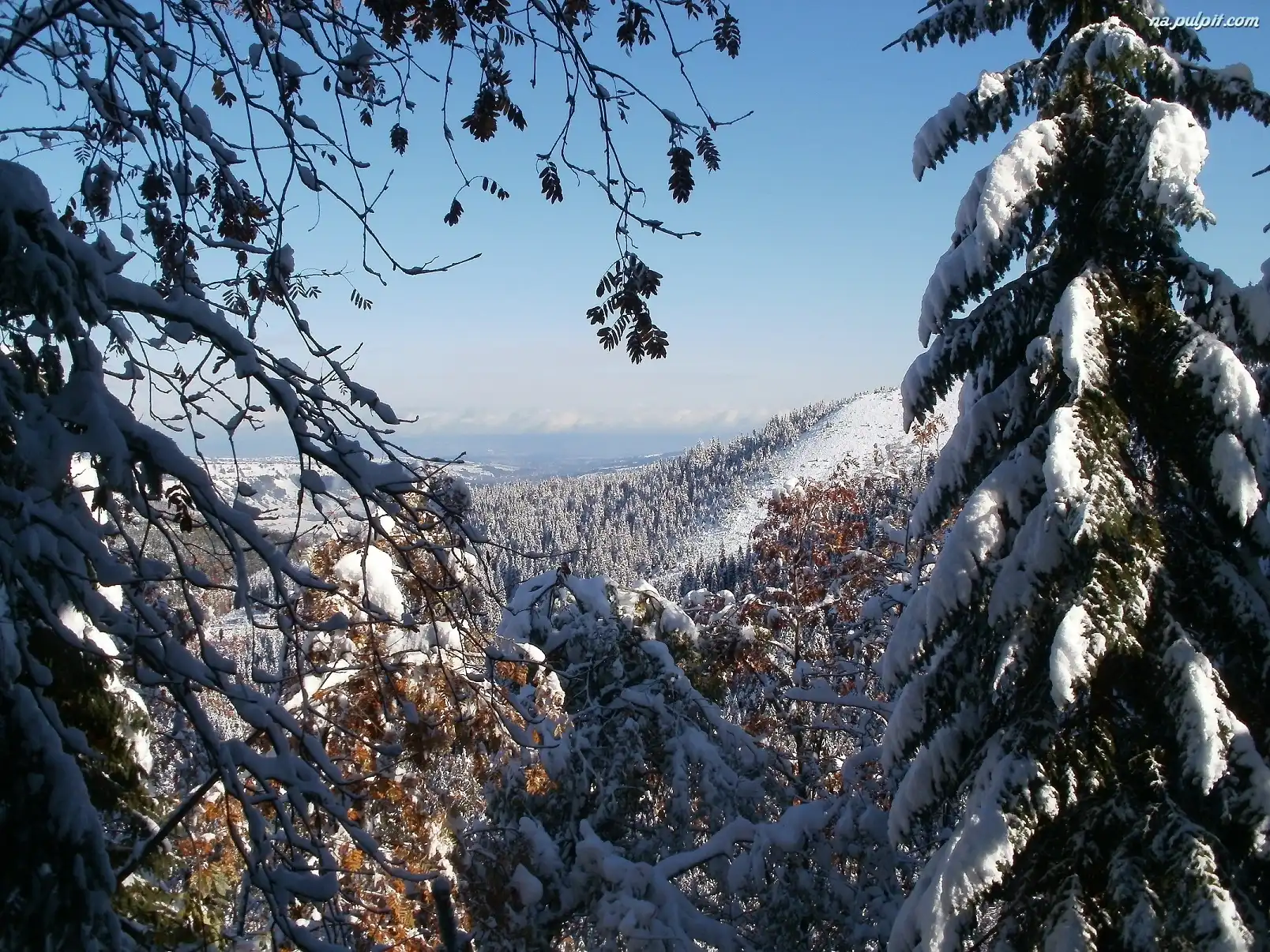Śnieg, Góry, Drzewa
