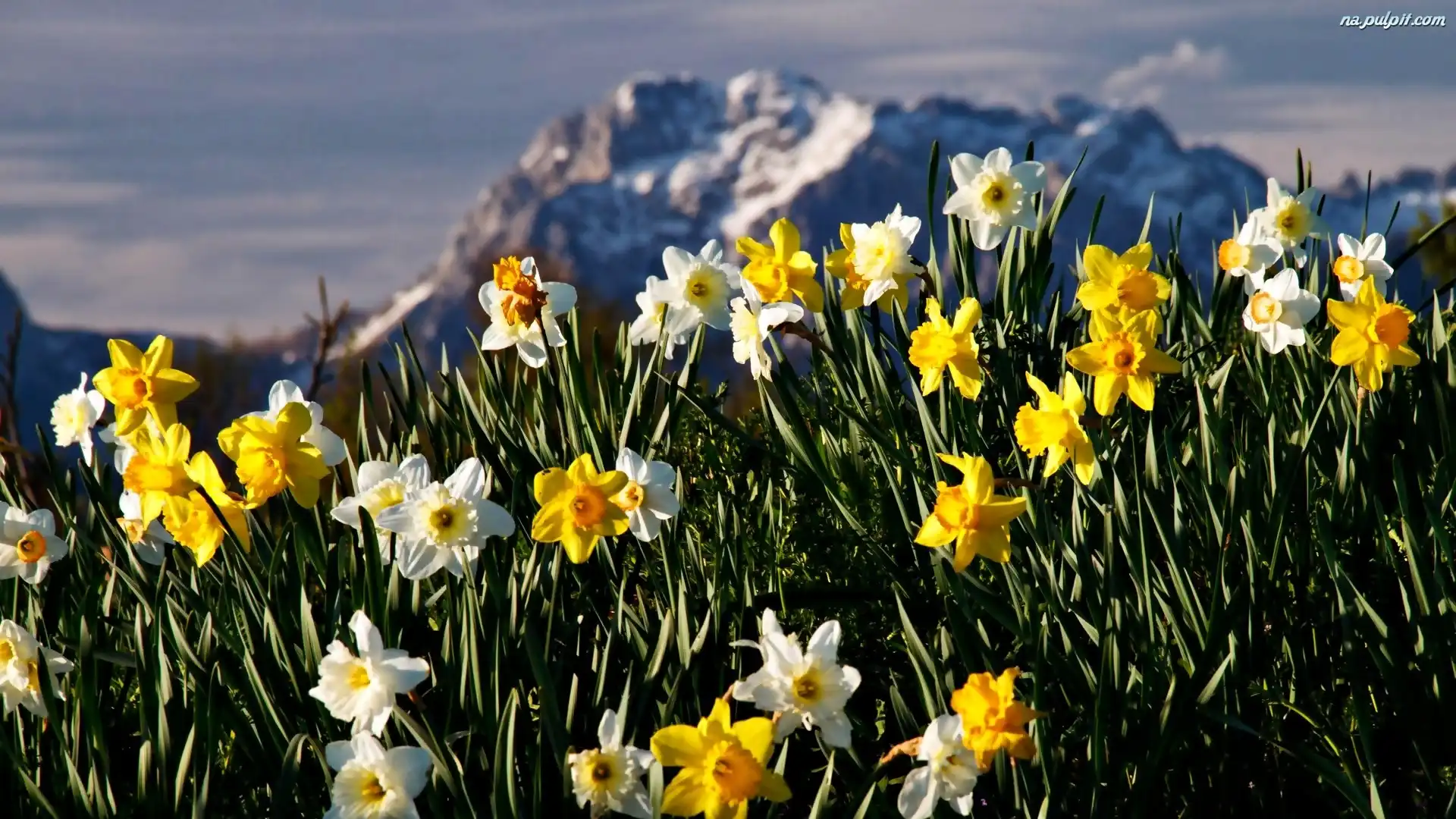 Góry, Rzeka, Śnieg Wiadro, Kosz, Żonkile, Kwiaty, Konewka Góry łąka, Szkocja, Niebo łąka, Burza, Niebo światło, noc, Góry, widok Stok, Góry, Zima Wiosna, Kwiaty, Drzewa, Kwitnące, Ogród Płot, Kwiat, Narcyz Fractalius, Narcyz, Kwiat Krople, Żółty, Narcyz Żonkile, Bukiet Szklane, Żonkile Czerwony, Przykoronek