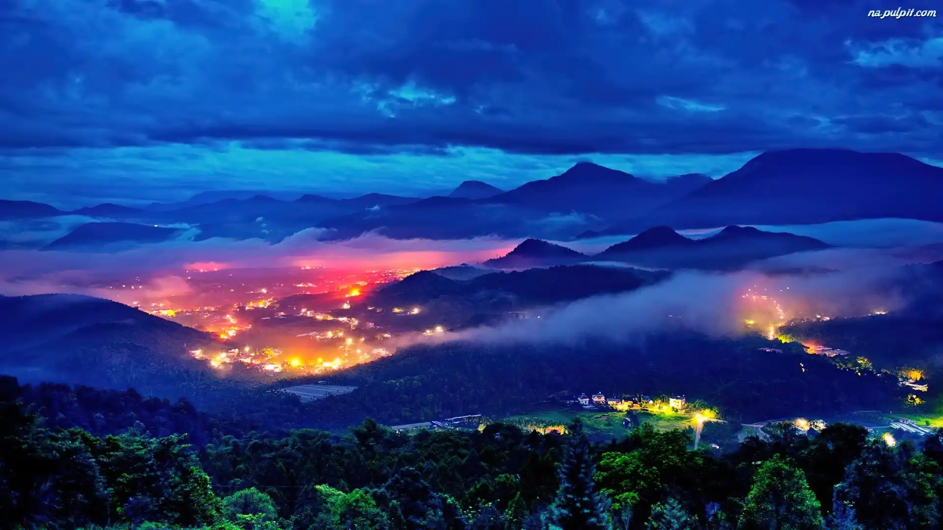 Góry, Miasta, Panorama, Nocą Na Pulpit