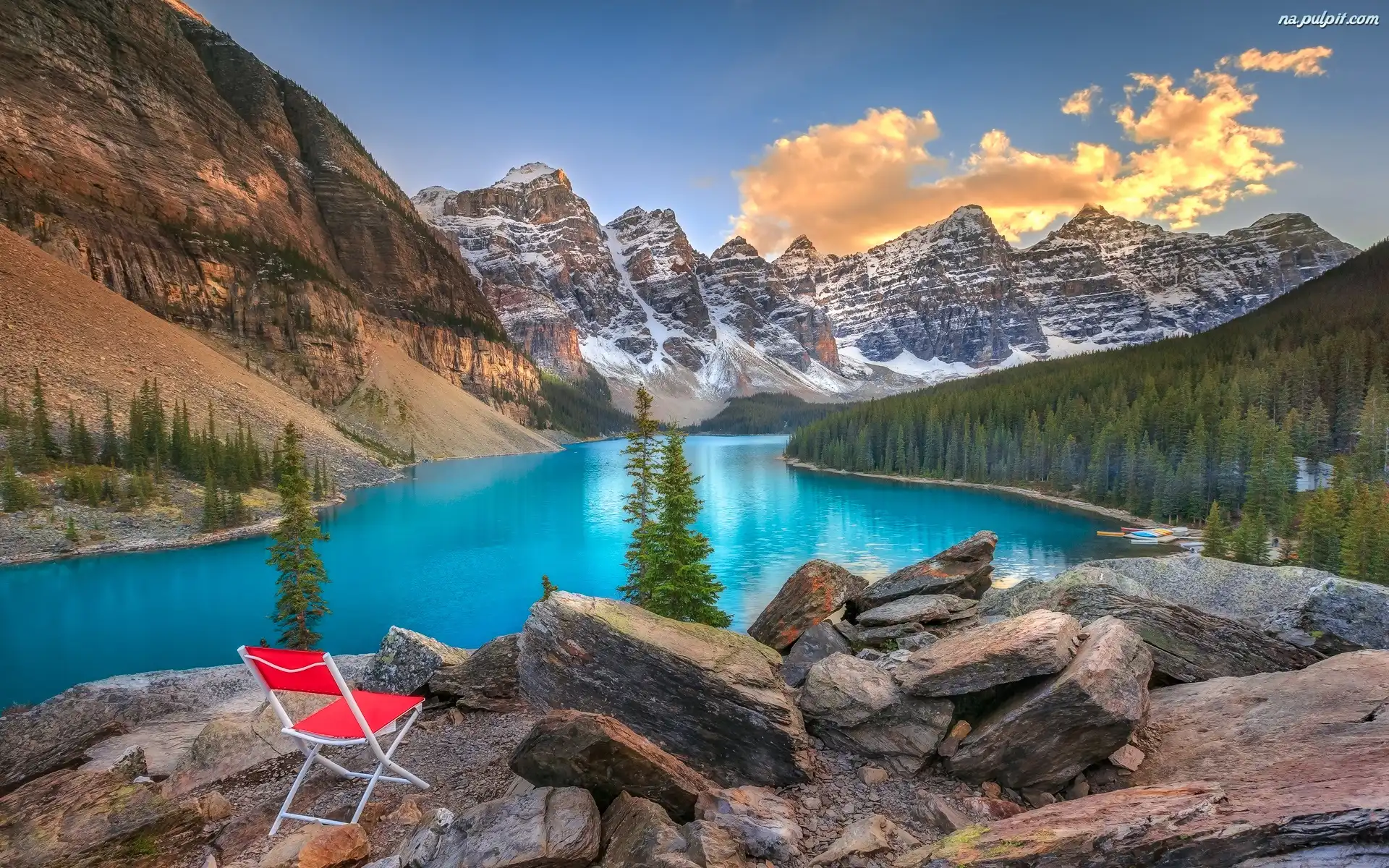Góry, Prowincja Alberta, Park Narodowy Banff, Jezioro Moraine, Czerwone, Krzesło, Las, Kanada, Drzewa Na Pulpit |