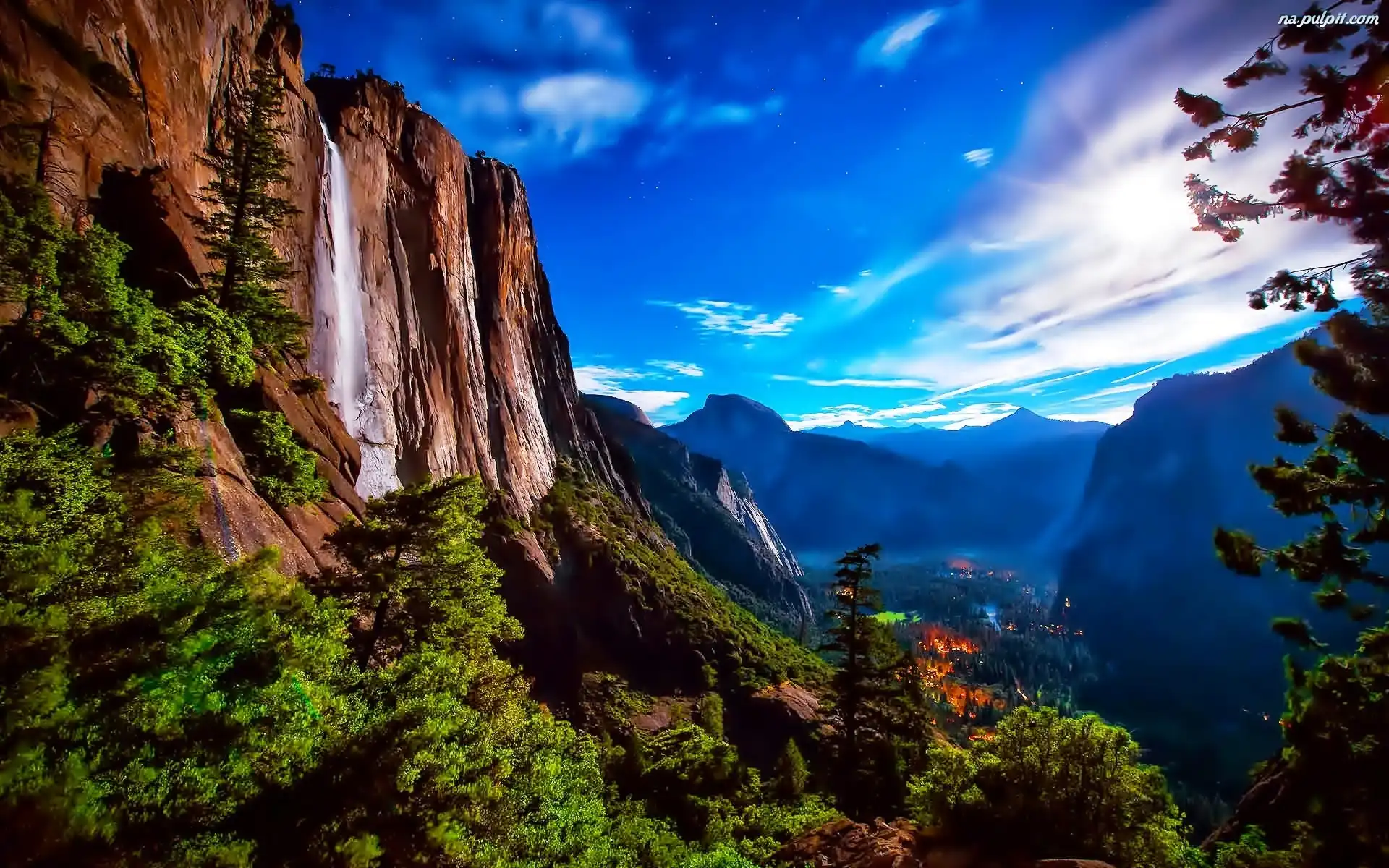 Stan Kalifornia, Drzewa, Wodospad, Park Narodowy Yosemite, Stany Zjednoczone, Góry Na Pulpit