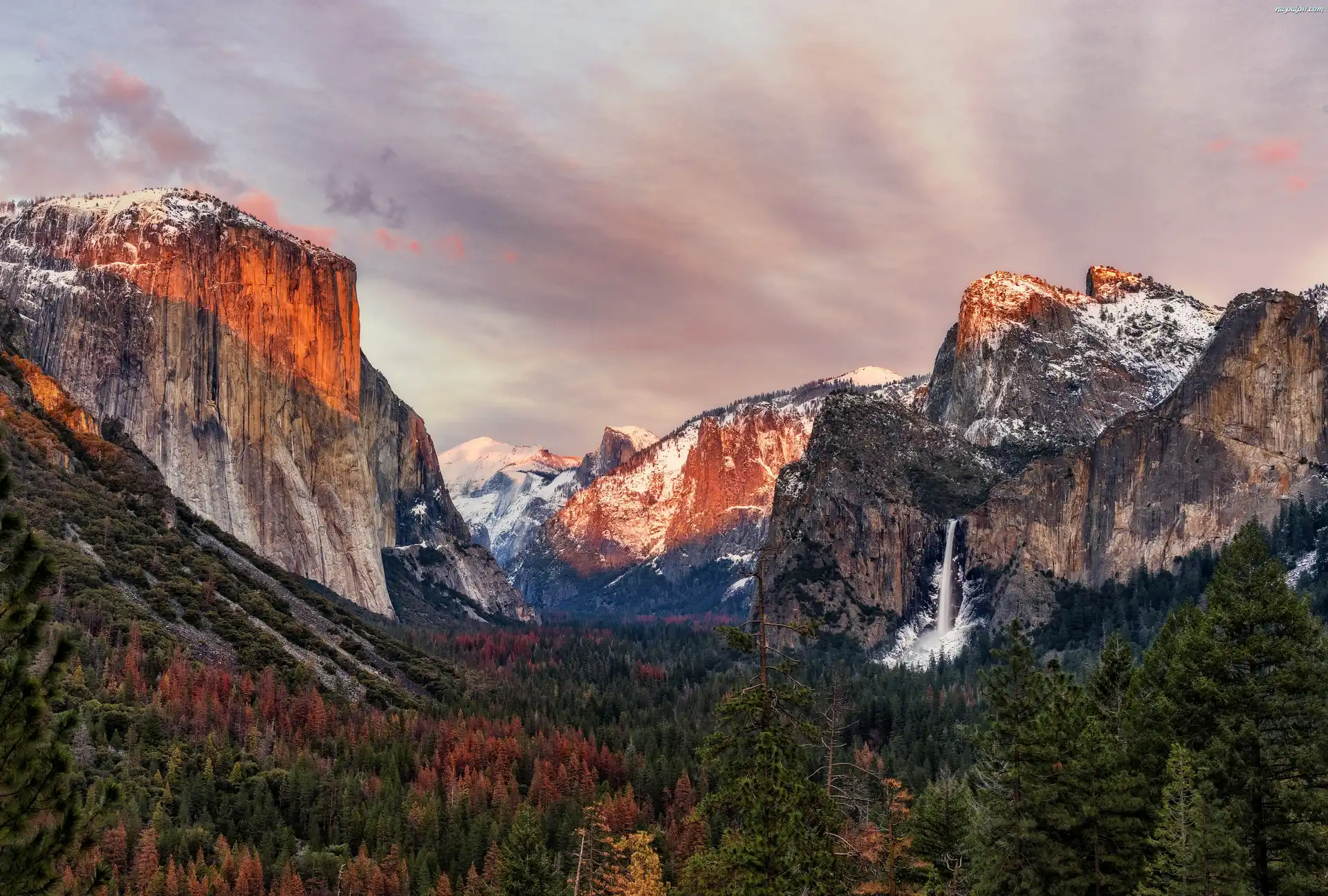Stan Kalifornia, Las, Drzewa, Park Narodowy Yosemite, Stany Zjednoczone, Góry