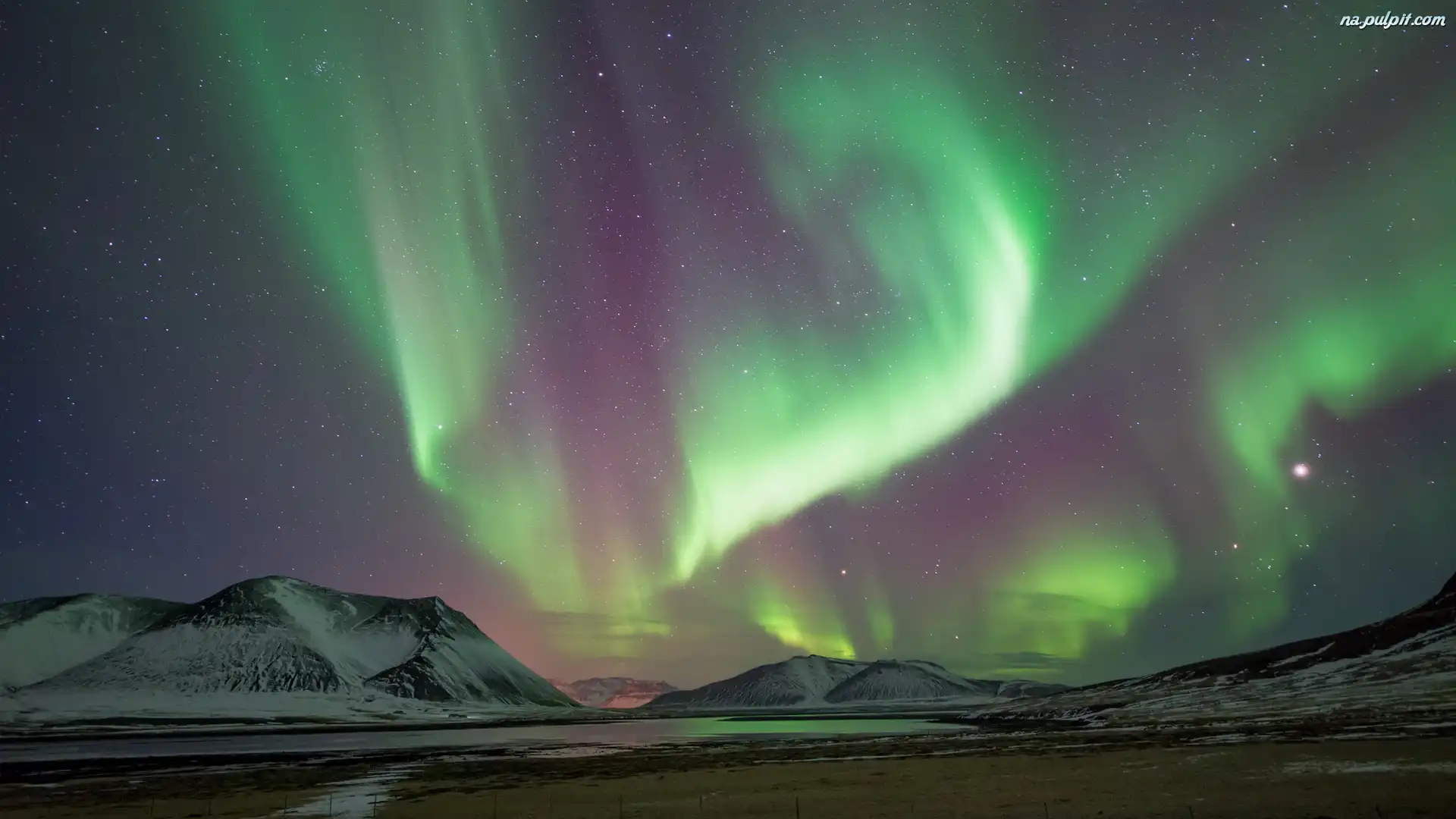 Zorza polarna, Lofoty, Wioska Reine, Drewniana, Chatka, Góry, Norwegia, Morze Norwegia, Zorza Polarna Fale, Drzewo, Góry, Plaża Góry, Niebo, Zorza Polarna Paprocie, Góra, Wodospady Góra, Irlandia, Kamienie Góra Góra Zima, Góry, Francja, Jezioro Zorza polarna, Zima, Dom Norwegia, Zorza, Polarna Odbice, Zorza, Polarna Góra Polarna, Zielona, Zorza