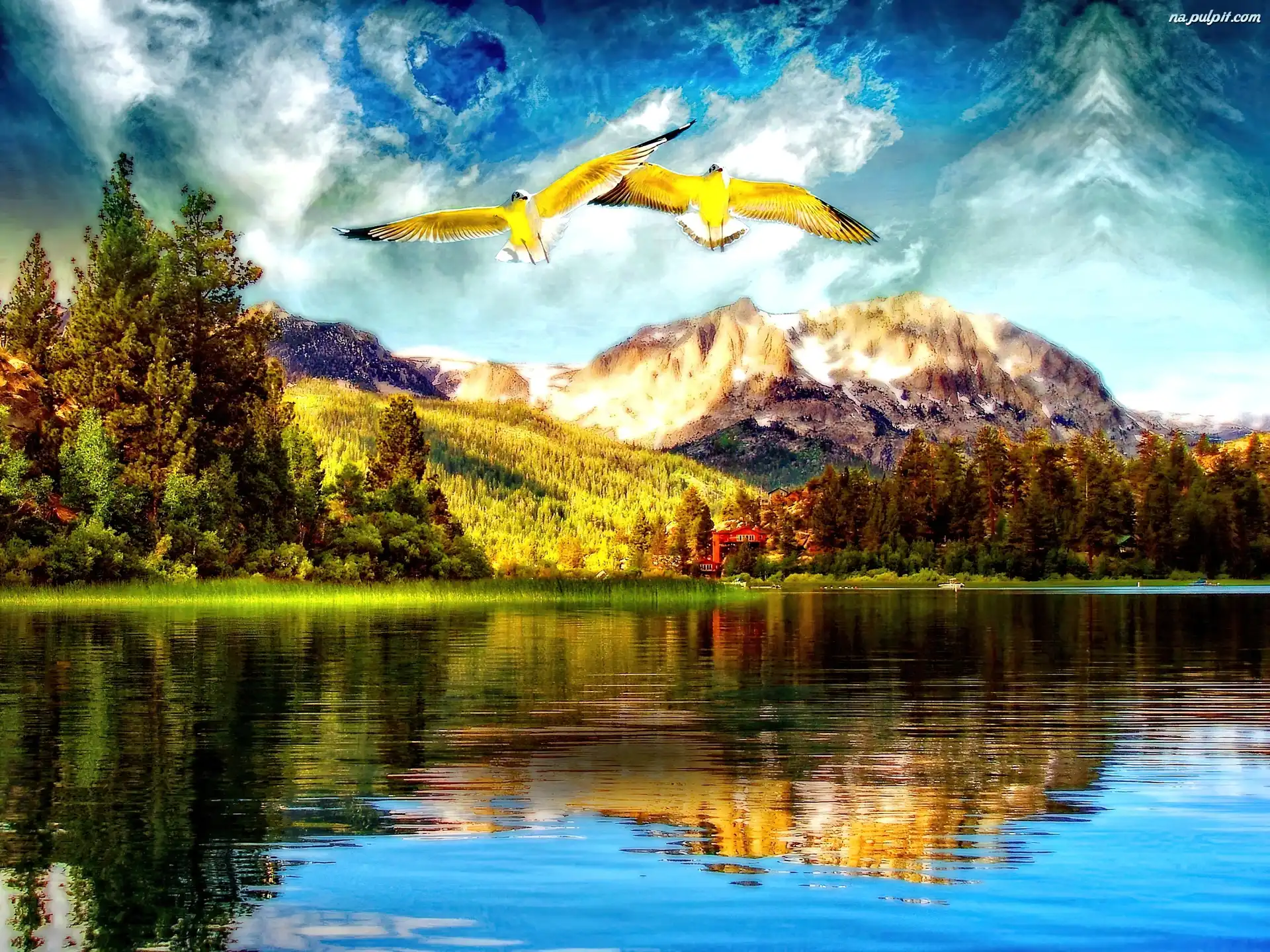 Ptaki, Góry, Jezioro Na Pulpit