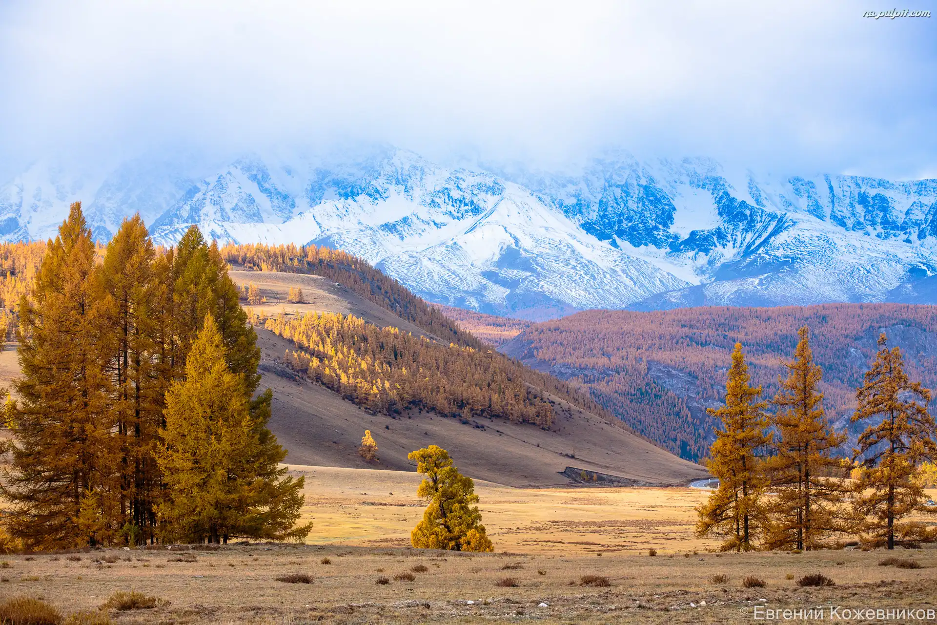 Rosja, Góry, Ałtaj, Wzgórza, Zalesione, Jesień, Drzewa Na Pulpit