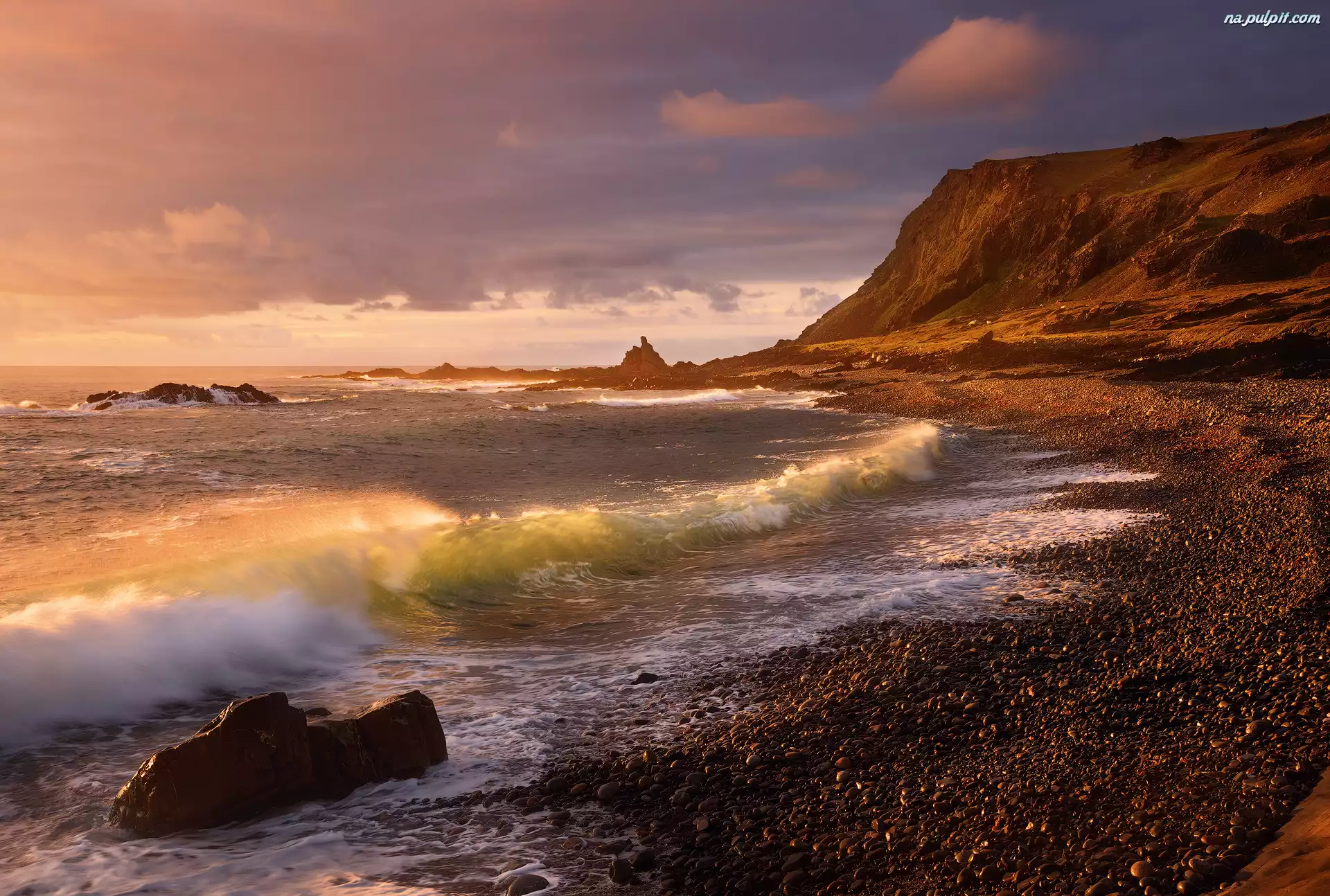Rosja, Góry, Kamienie, Morze, Półwysep Rybacki, Fale Na Pulpit