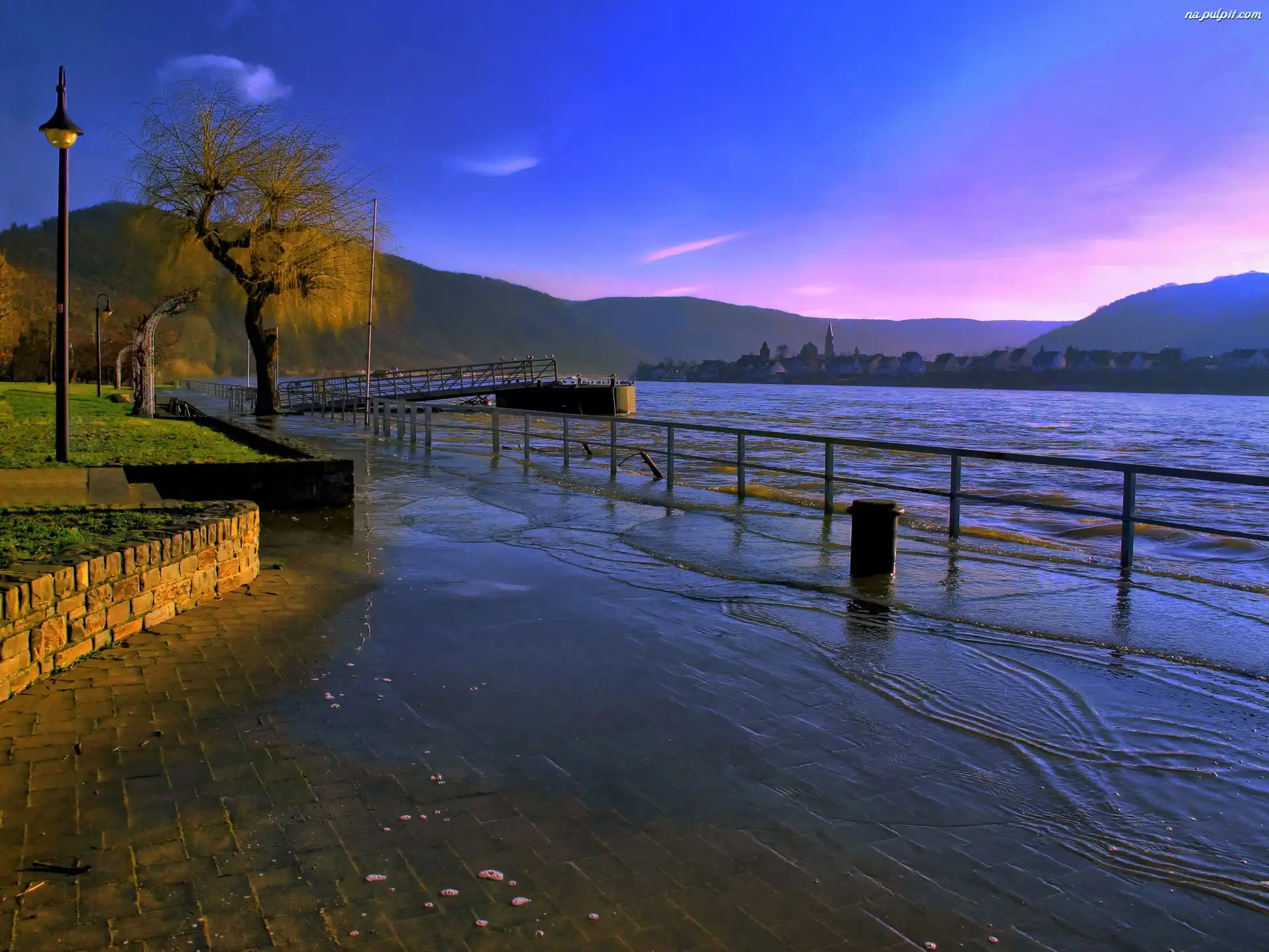 Góry, Chodnik, Ogrodzenie, Rzeka, Drzewo Na Pulpit