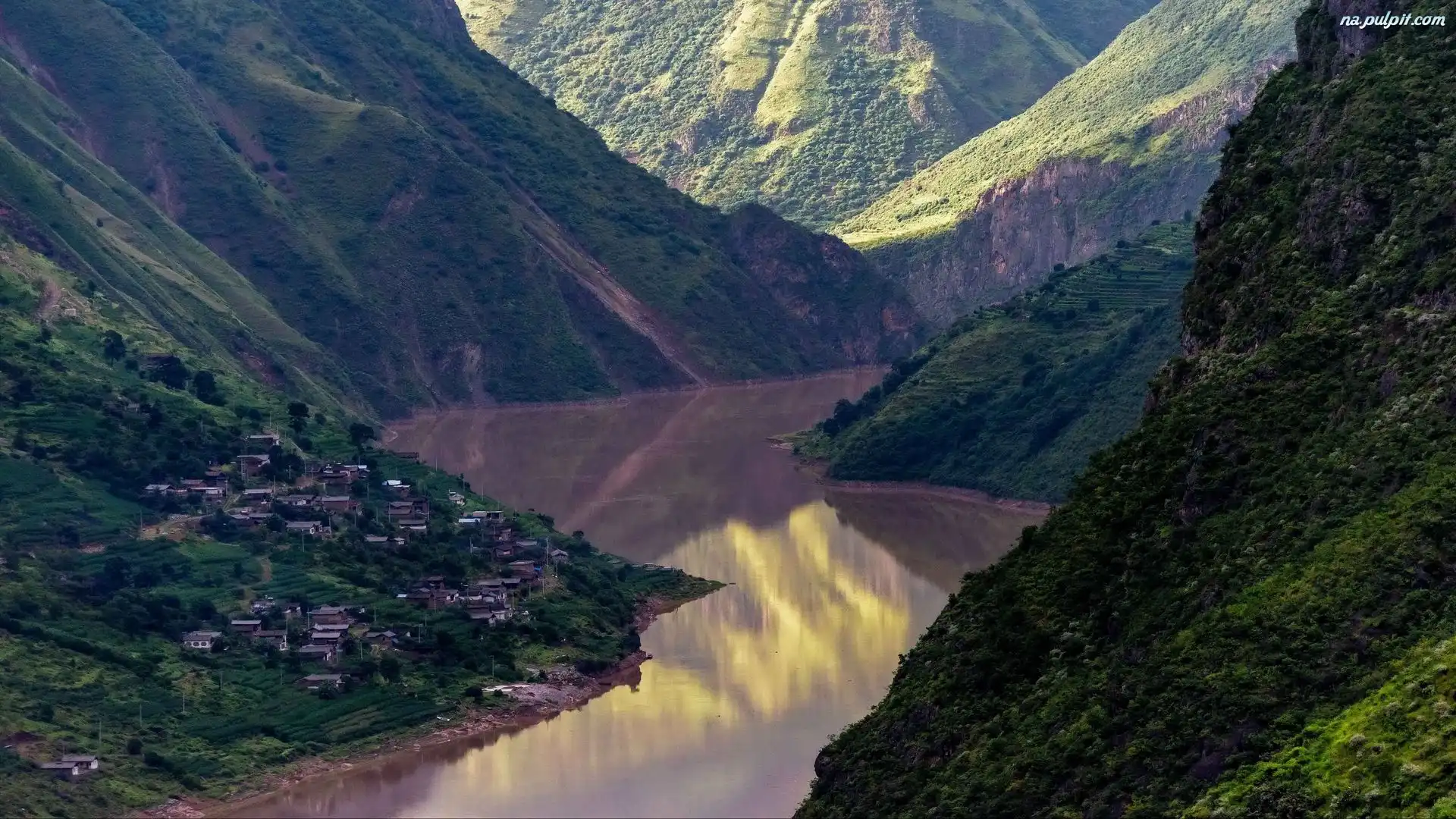 Góry, Domy, Wąwóz, Zbocza, Rzeka, Wioska Na Pulpit