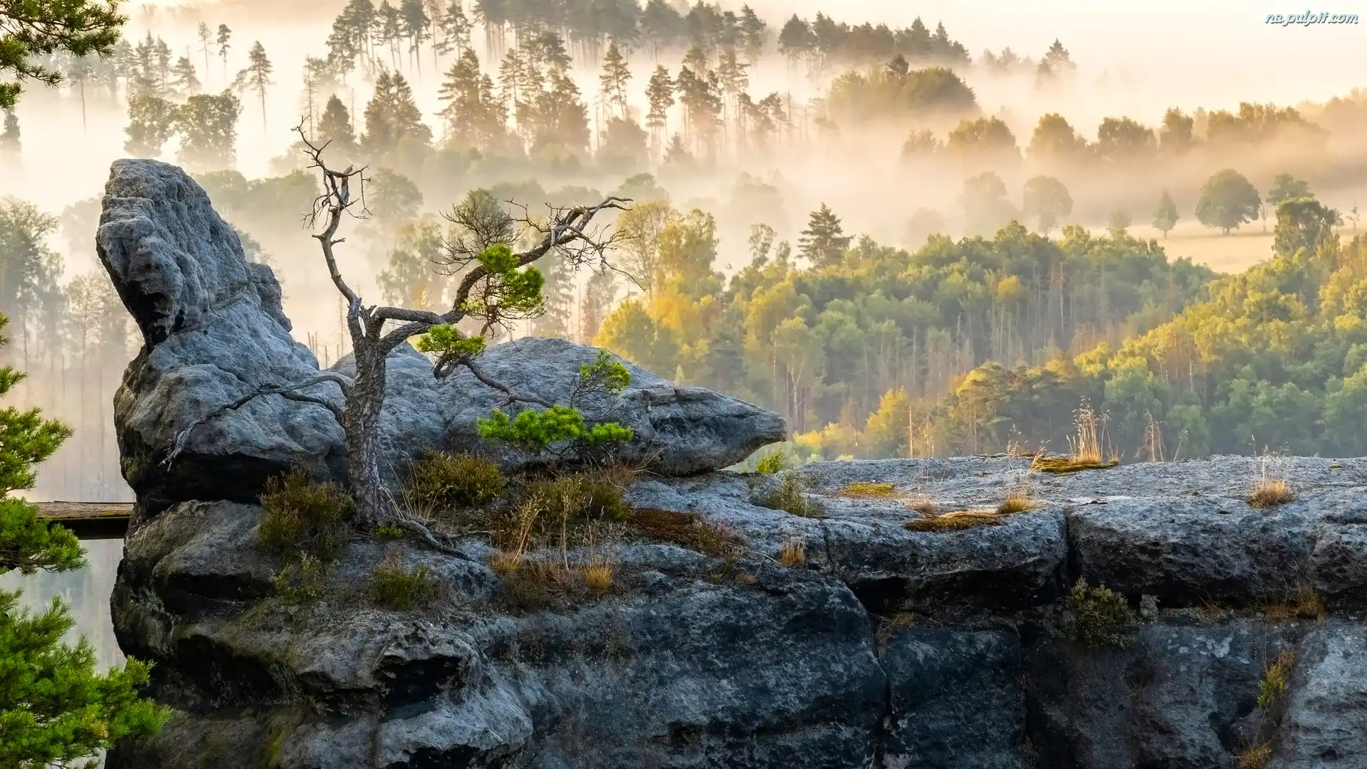 Las, Góry, Skały, Mgła, Drzewa Na Pulpit