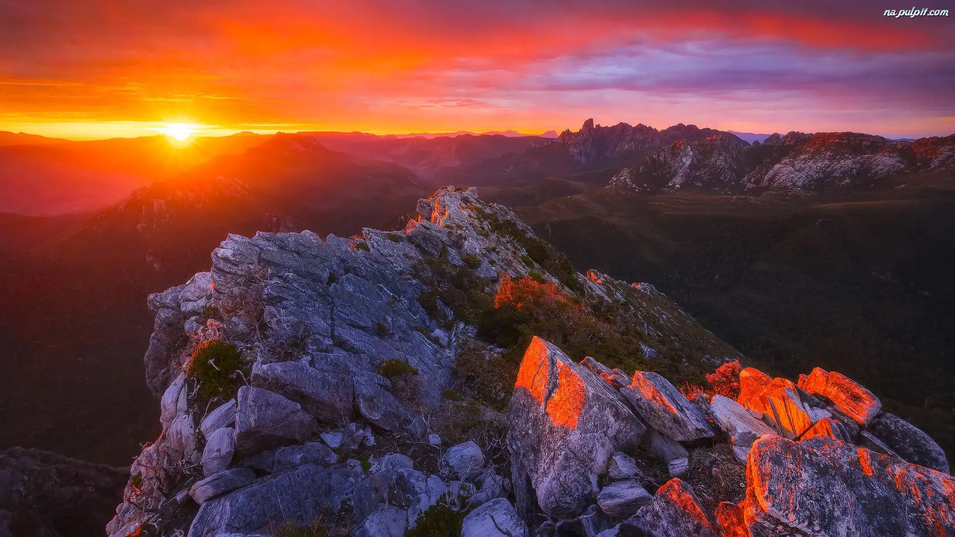 Kolorowe, Zachód słońca, Góry, Niebo, Skały Na Pulpit