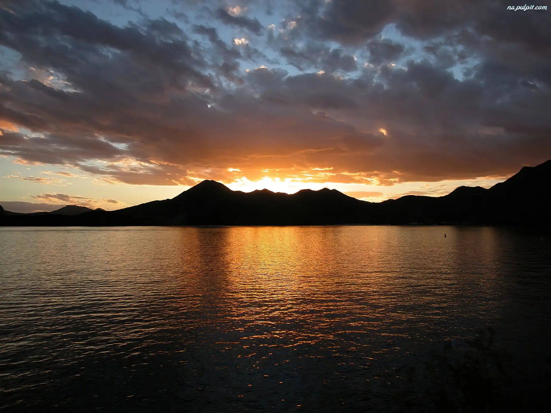 Góry, Zachód Słońca, Jezioro Na Pulpit