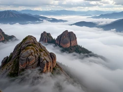 Opadająca, Góry, Szczyty, Mgła, Skały Na Pulpit