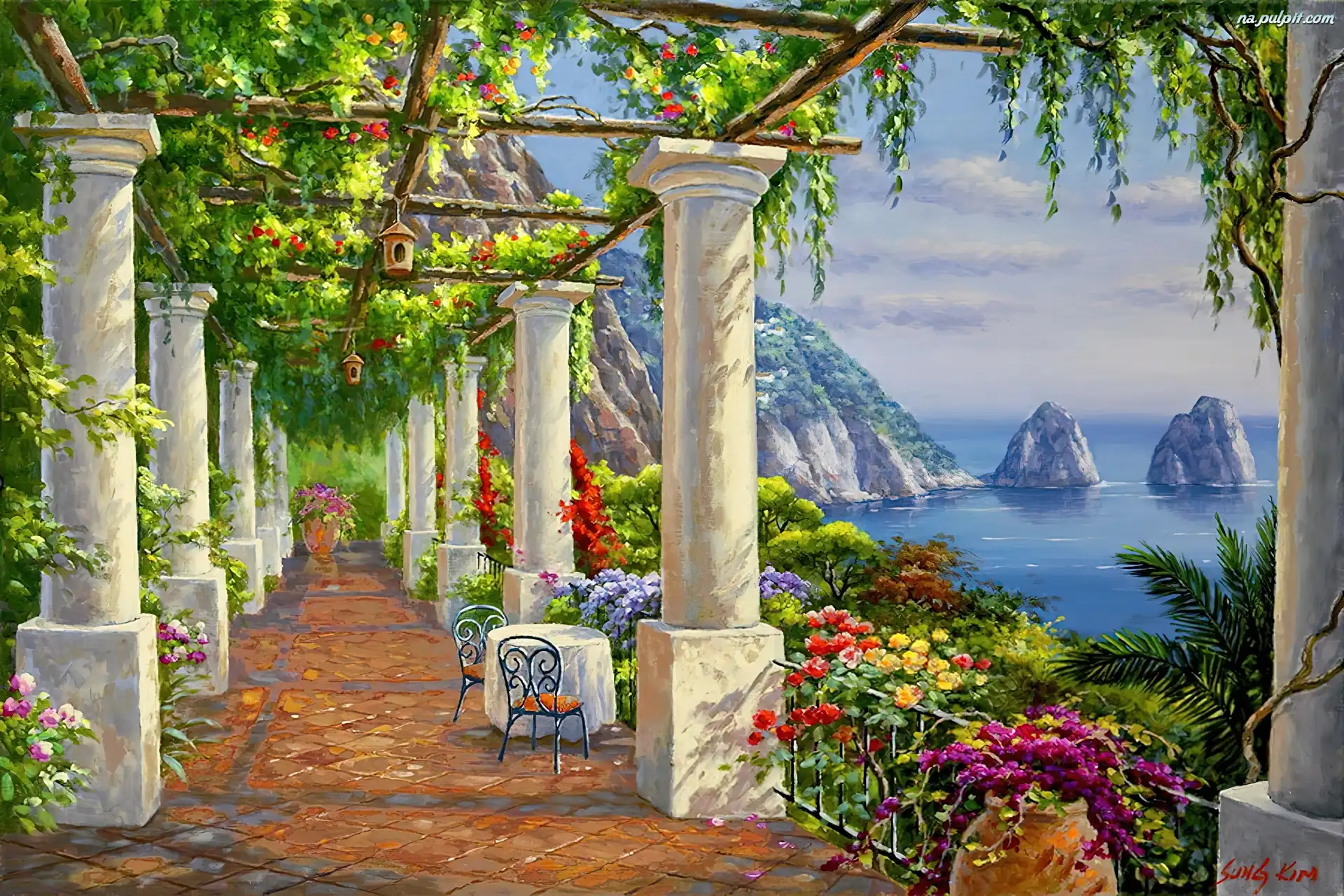 Góry, Widok, Kolumny, Taras, Morze Na Pulpit