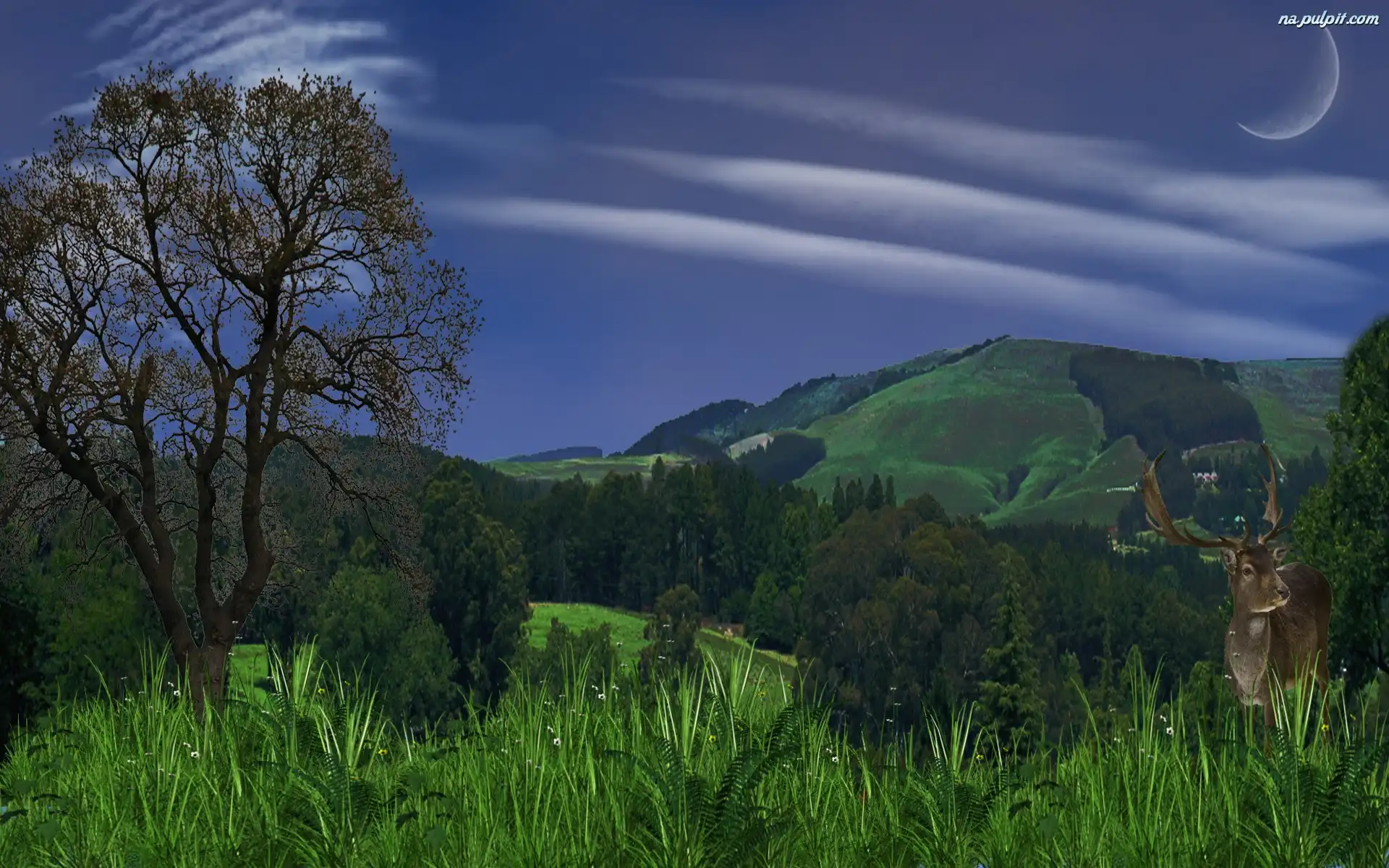 Góry, Polana, Wieczór, Jeleń Na Pulpit