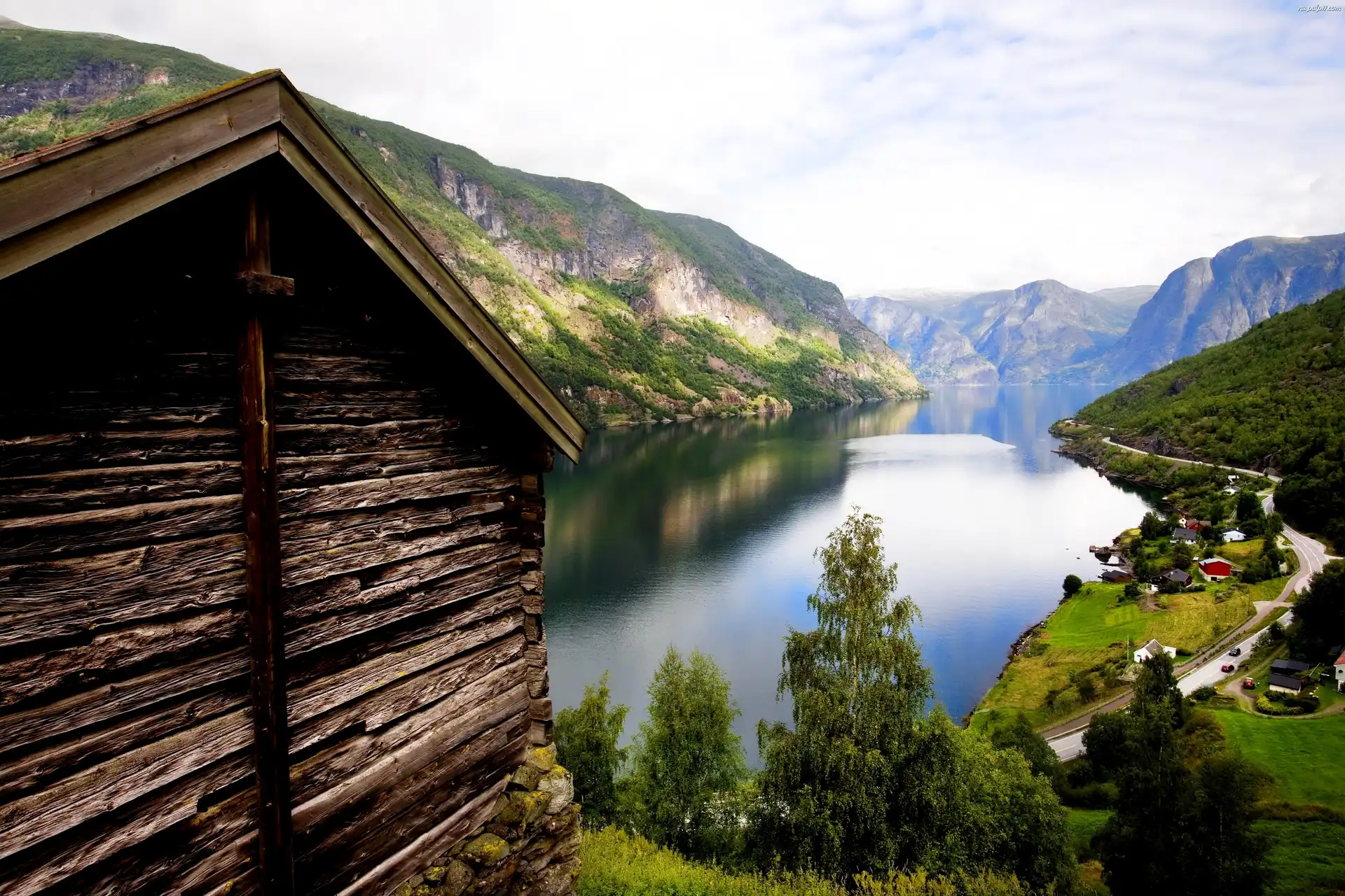 Góry, Jeziorem, Nad, Wioska, Droga Na Pulpit