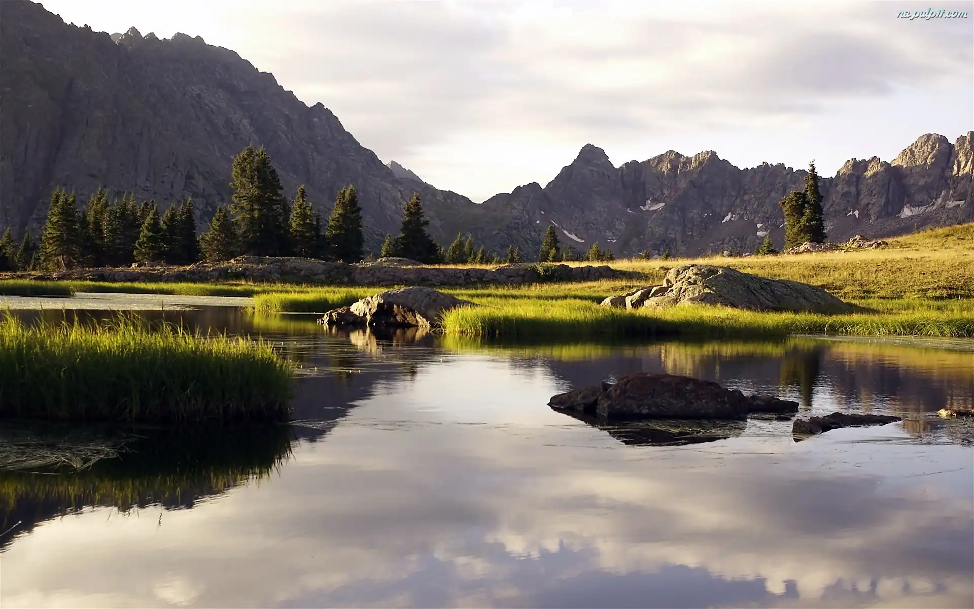 Góry, Rzeka, Odbicie, Las, Świt, Łąka Na Pulpit