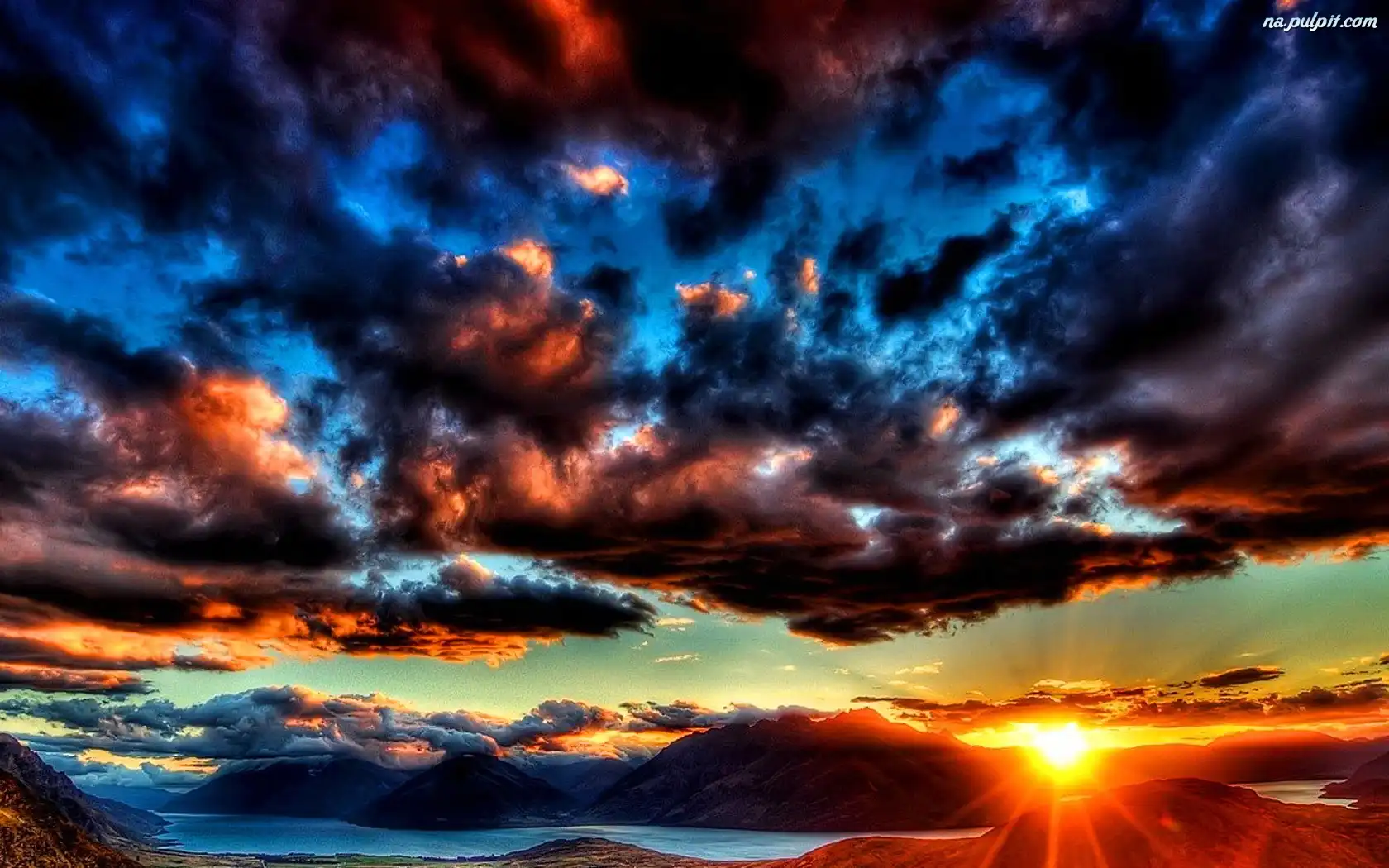 Góry, Słońca, Zachód, Chmury Na Pulpit