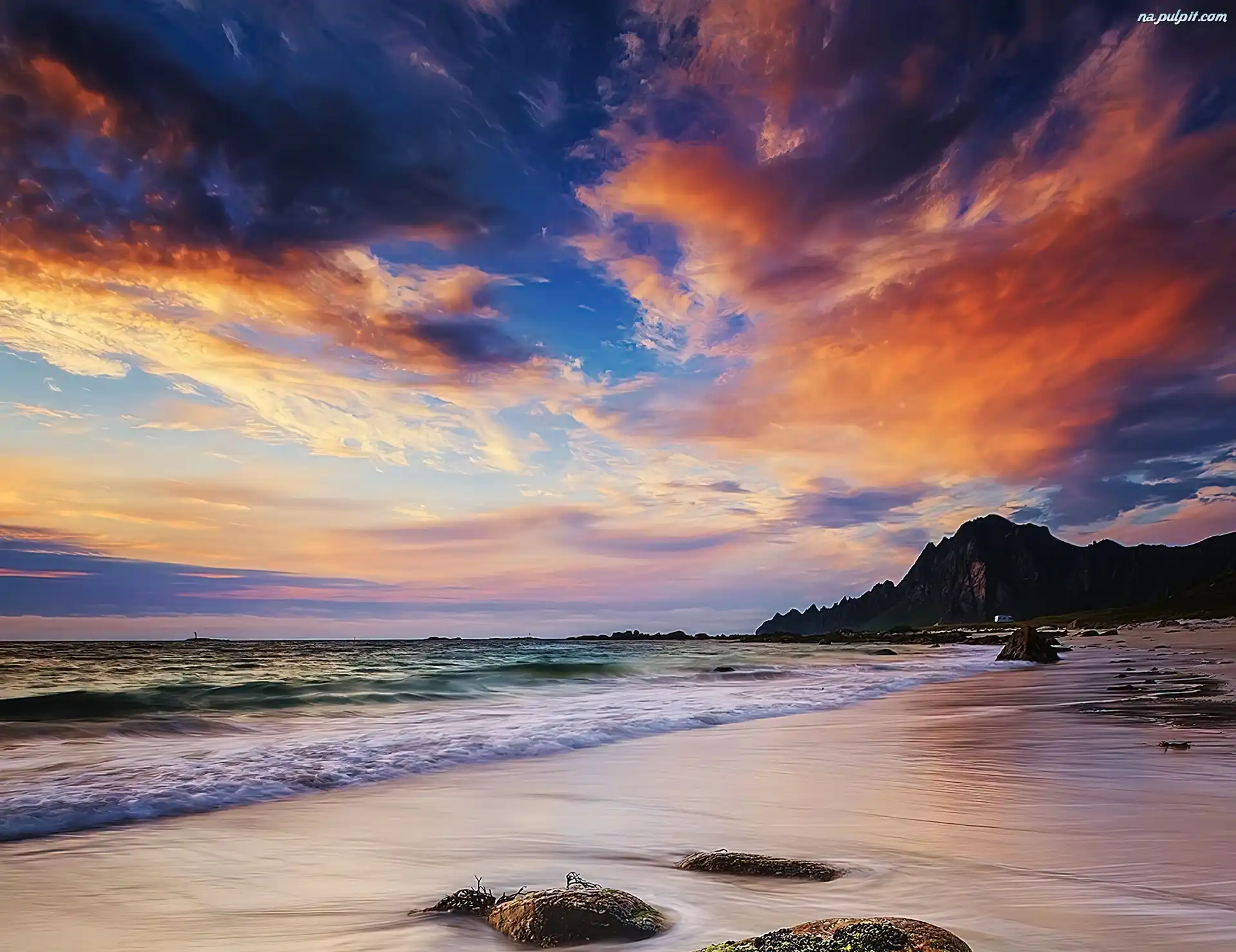 Góry, Słońca, Zachód, Morze Na Pulpit