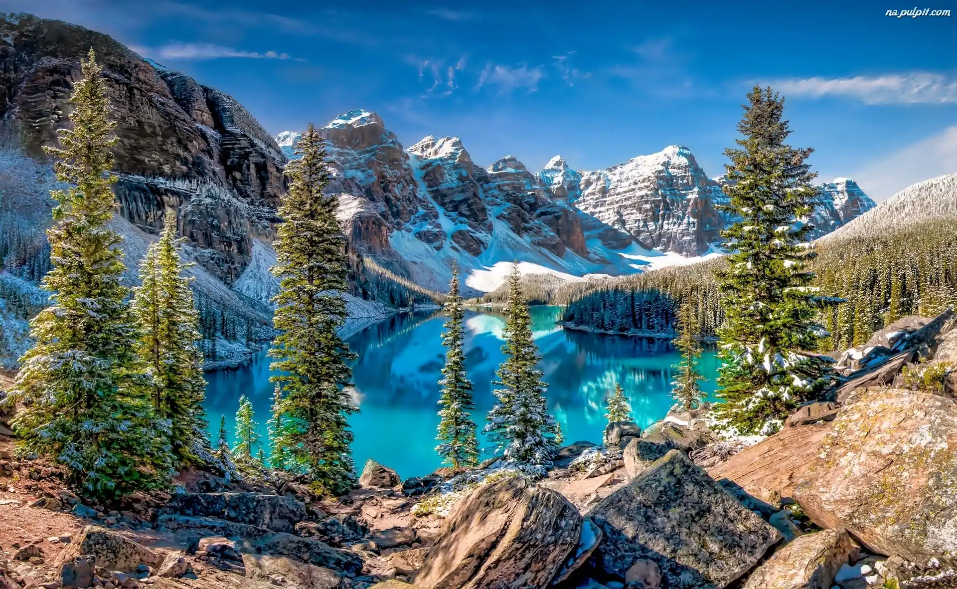 Góry, Morenowe, Kanada, Las, Zima, Jezioro Na Pulpit
