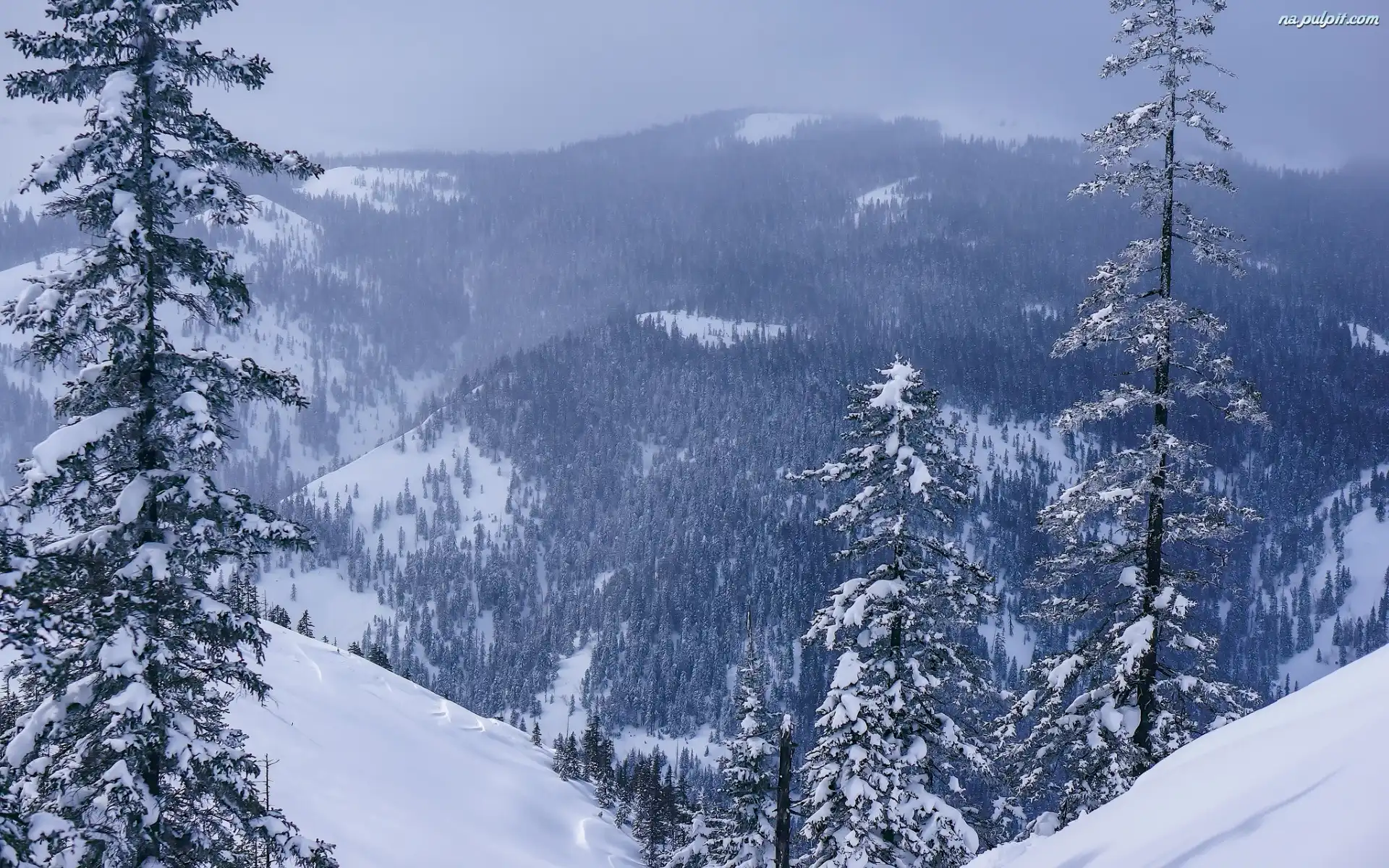Góry, Śnieg, Las, Zima, Drzewa Na Pulpit