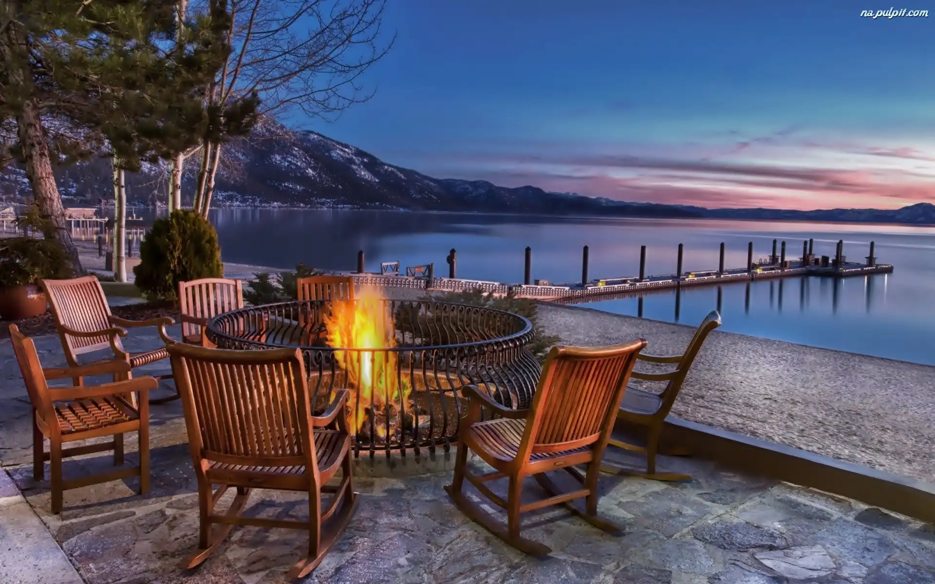 Sierra Nevada, Molo, Ognisko, Zmierzch, USA, Kurort, Jezioro Tahoe, Góry Na Pulpit