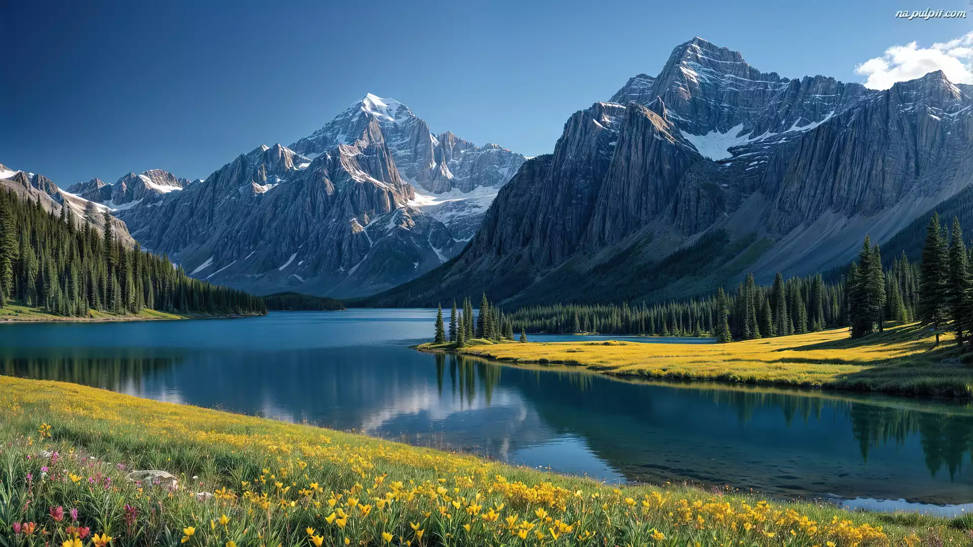 Żółte, Kwiaty, Jezioro, Góry Na Pulpit