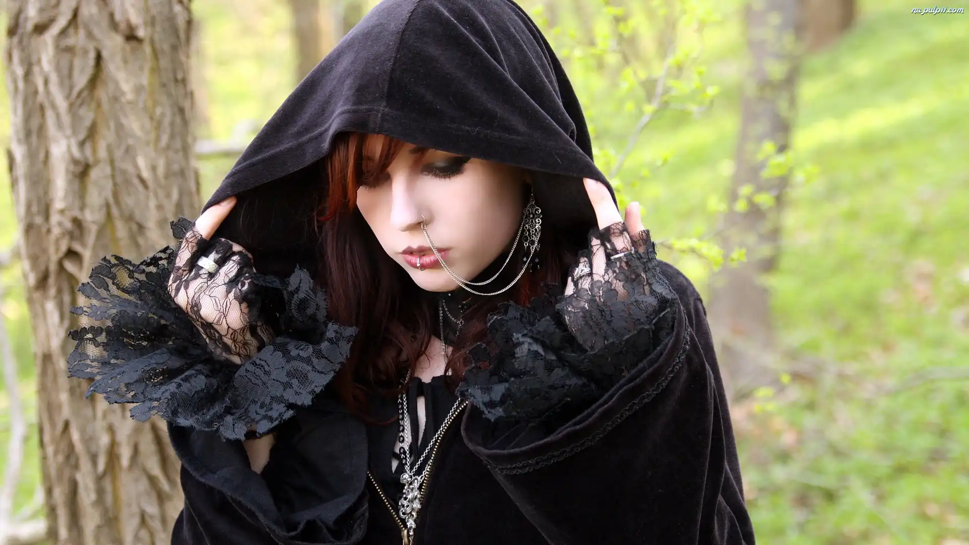 Gothic, Makijaż, Dziewczyna, Drzewa, Biżuteria Na Pulpit