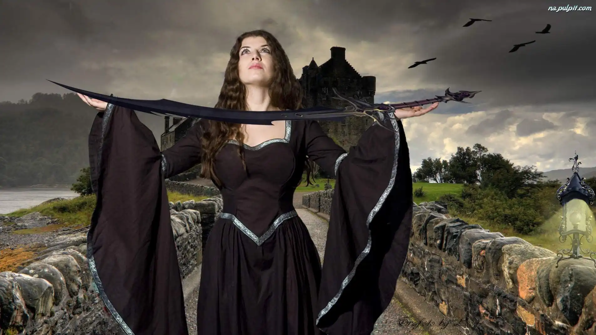 Gotyk, Miecz, Kobieta, Suknia