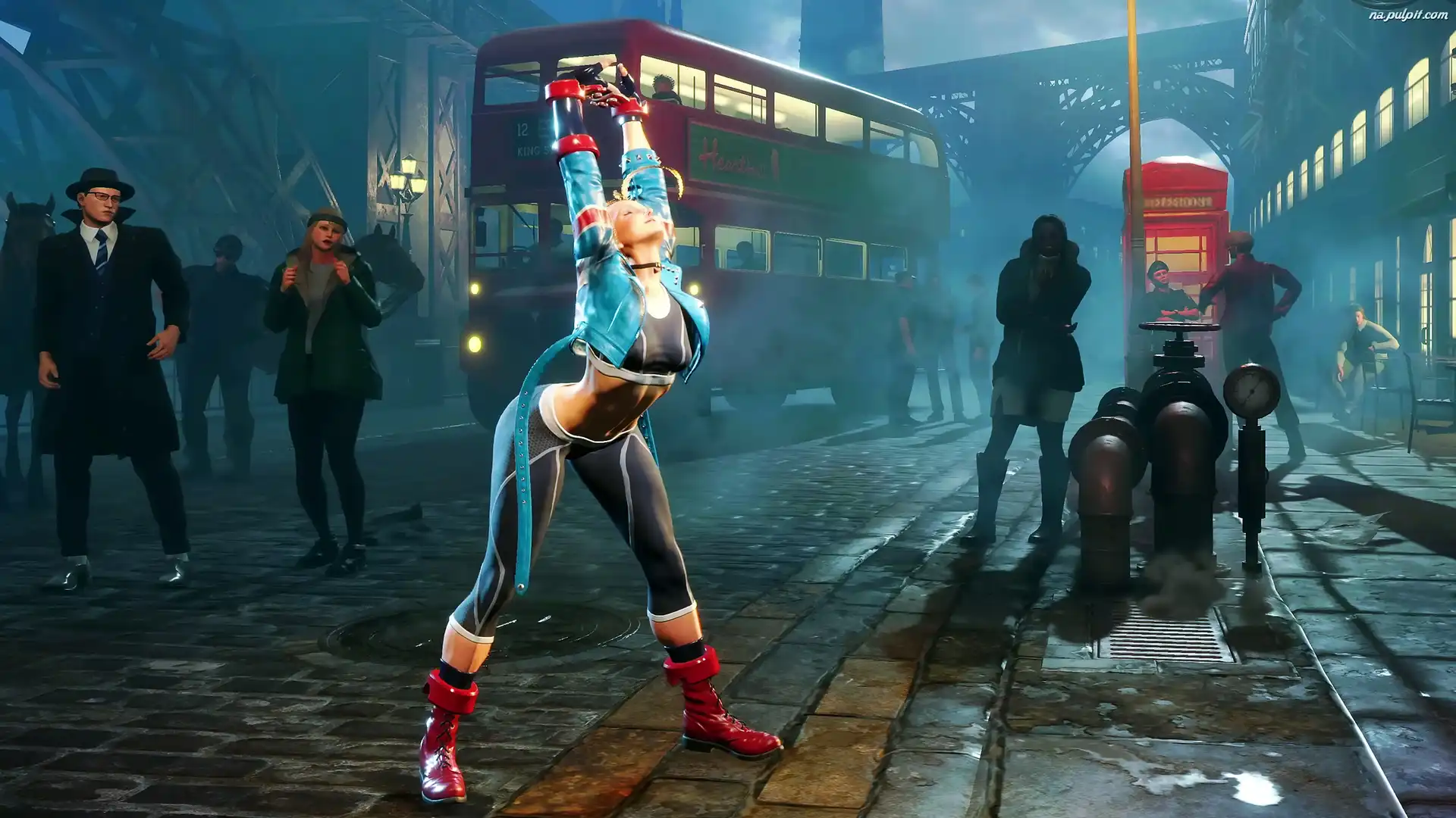 Przystanek, Autobus, Street Fighter VI, Cammy White, Kobieta, Postać, Gra, Ulica, Gimnastyka Na Pulpit |