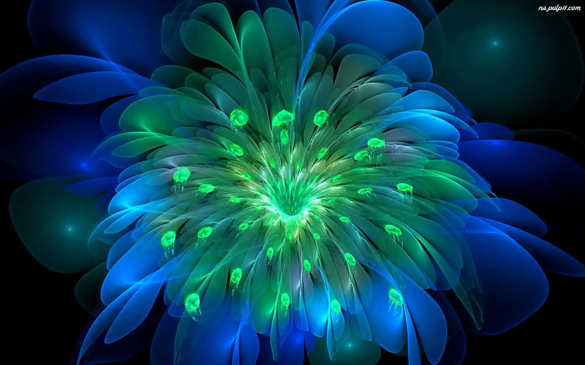 Grafika, Niebieski, Abstrakcja, Kwiat Na Pulpit