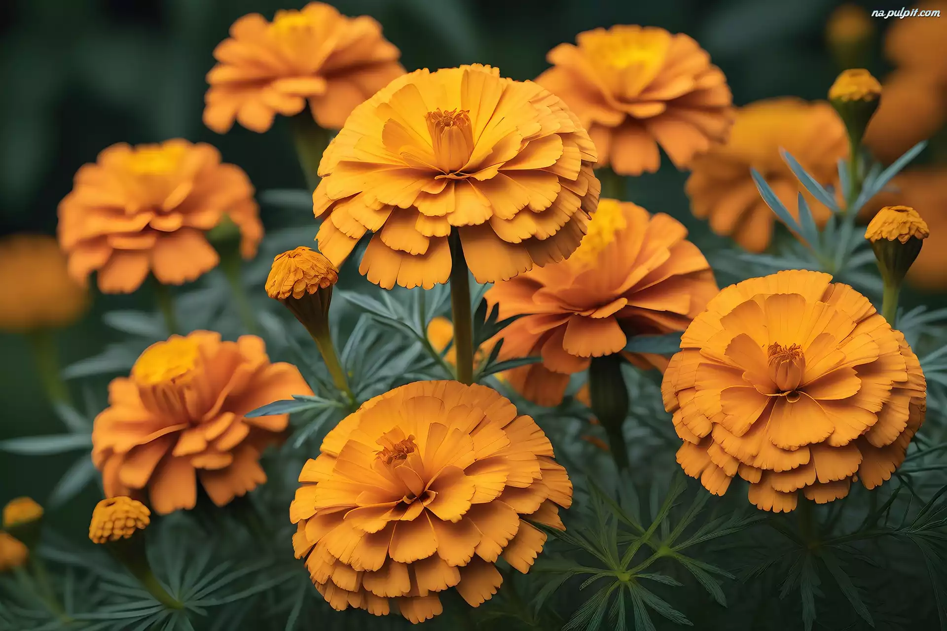 Aksamitki, Pomarańczowe, Kwiaty, Grafika Na Pulpit
