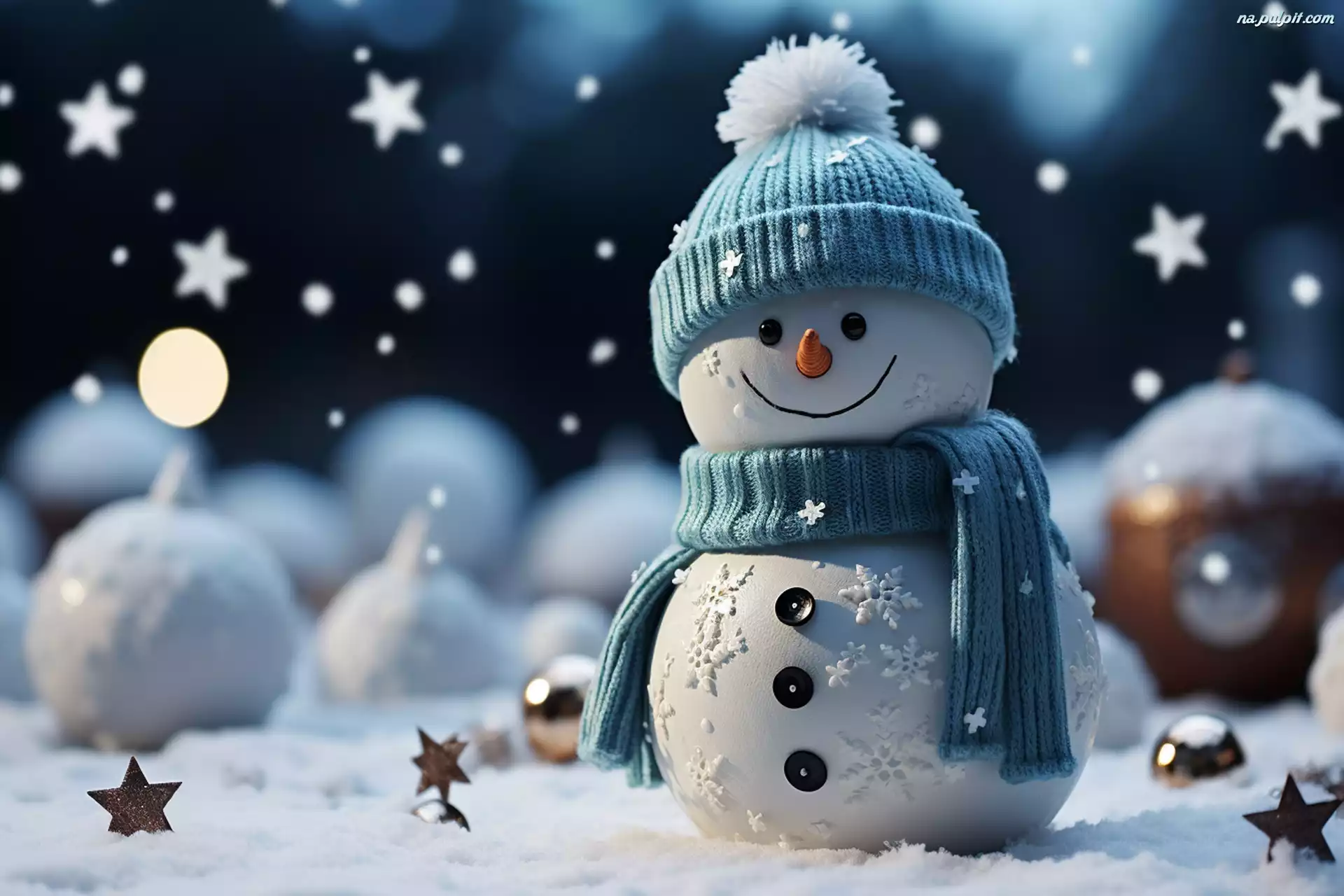Bałwanek, Noc, Gwiazdki, Grafika Na Pulpit