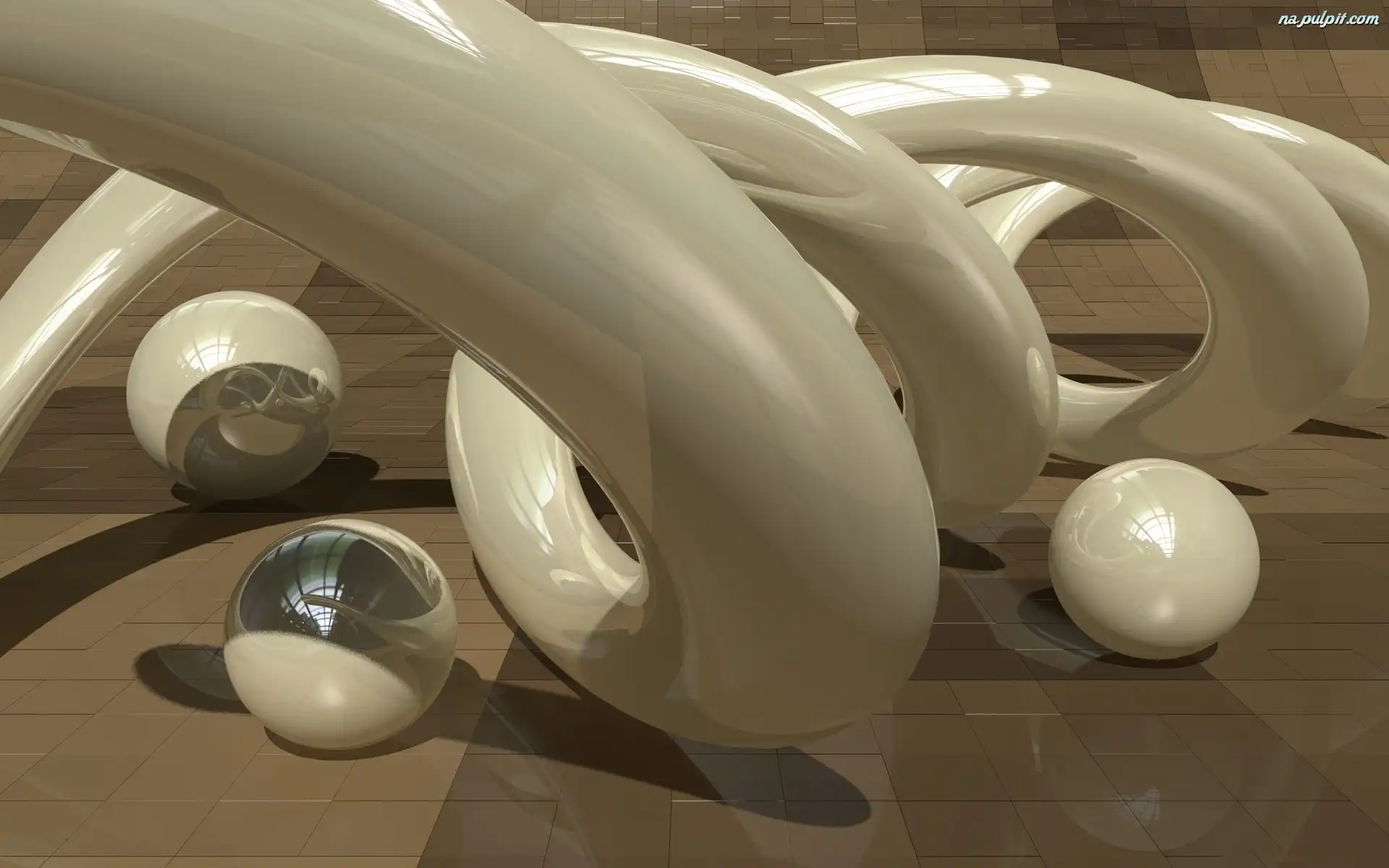 Grafika 3D, Kulki, Białe, Spirala Na Pulpit