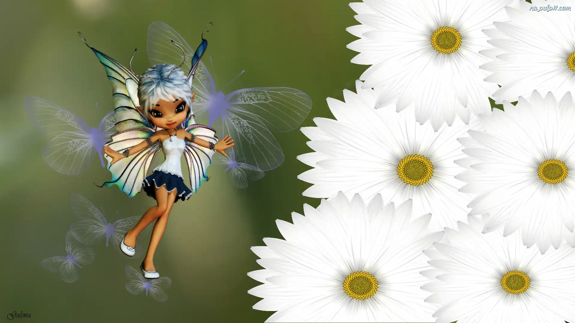 Grafika, Laleczka, Kwiaty, Białe, Wróżka Na Pulpit